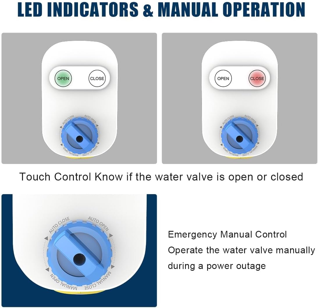 - 【Clear Indication and Smart Alerts】Our smart water valve has a sleek design with visible LED lights - green for open and red for closed. Receive timely notifications via our app for scheduled operations or unexpected interruptions. Worried about power outages? you can configure the valve to automatically close in the event of a power outage, preventing leaks and providing peace of mind. Enjoy worry-free travel, with no risk of forgetting to turn off the tap or neglecting your plants while away.