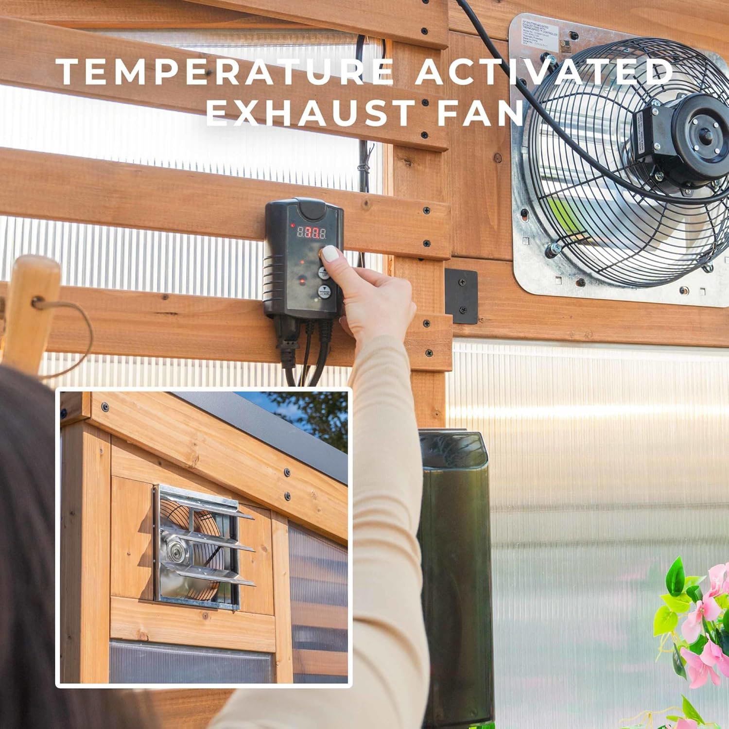 - Integrated Ventilation: Features a temperature-activated exhaust fan for forced ventilation and 1 easy-open window for natural air circulation and pollination, ensuring optimal growing conditions