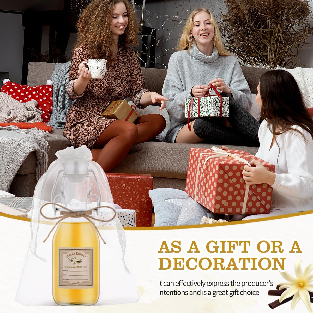 - Perfect Gift Combinations:The package include 20pcs swing top glass bottles for vanilla extract homemade,24piece labels,20 small gift bags,4 brushes,4 funnels,and one roll of 15 meters of red cotton rope,i think it can be the best gift combination and enough for your family daily use and replacement