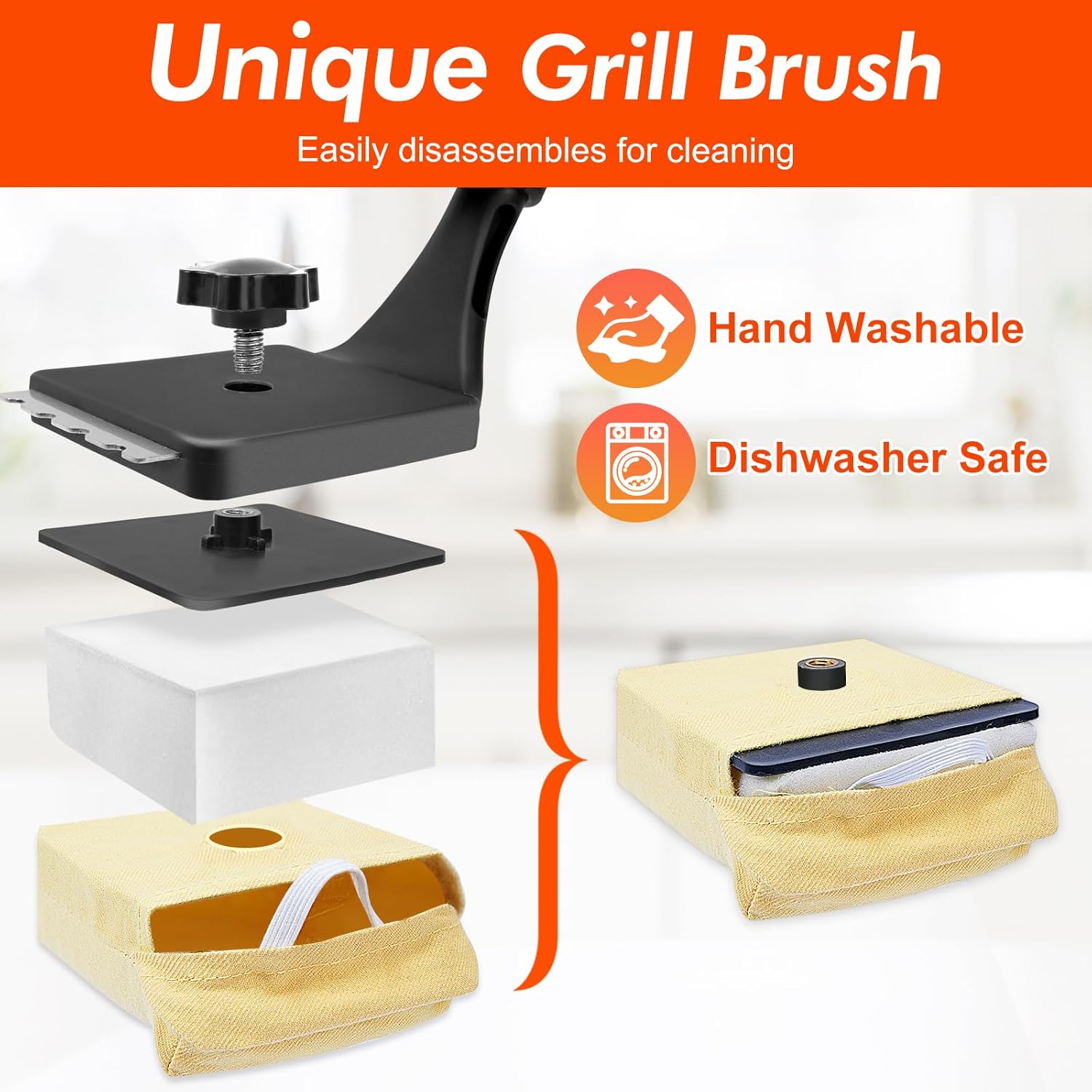 - 【Durable & Heat-Resistant】Our long-lasting cleaning heads of this grill brush bristle free are made from a heat-retardant foam, wrapped in a high-temp Aramid Fiber layer to ensure maximum longevity, and they’re dishwasher and washing machine safe. Use tips: preheat grill to over 400 degrees Fahrenheit, and then turn off all burners for your safety