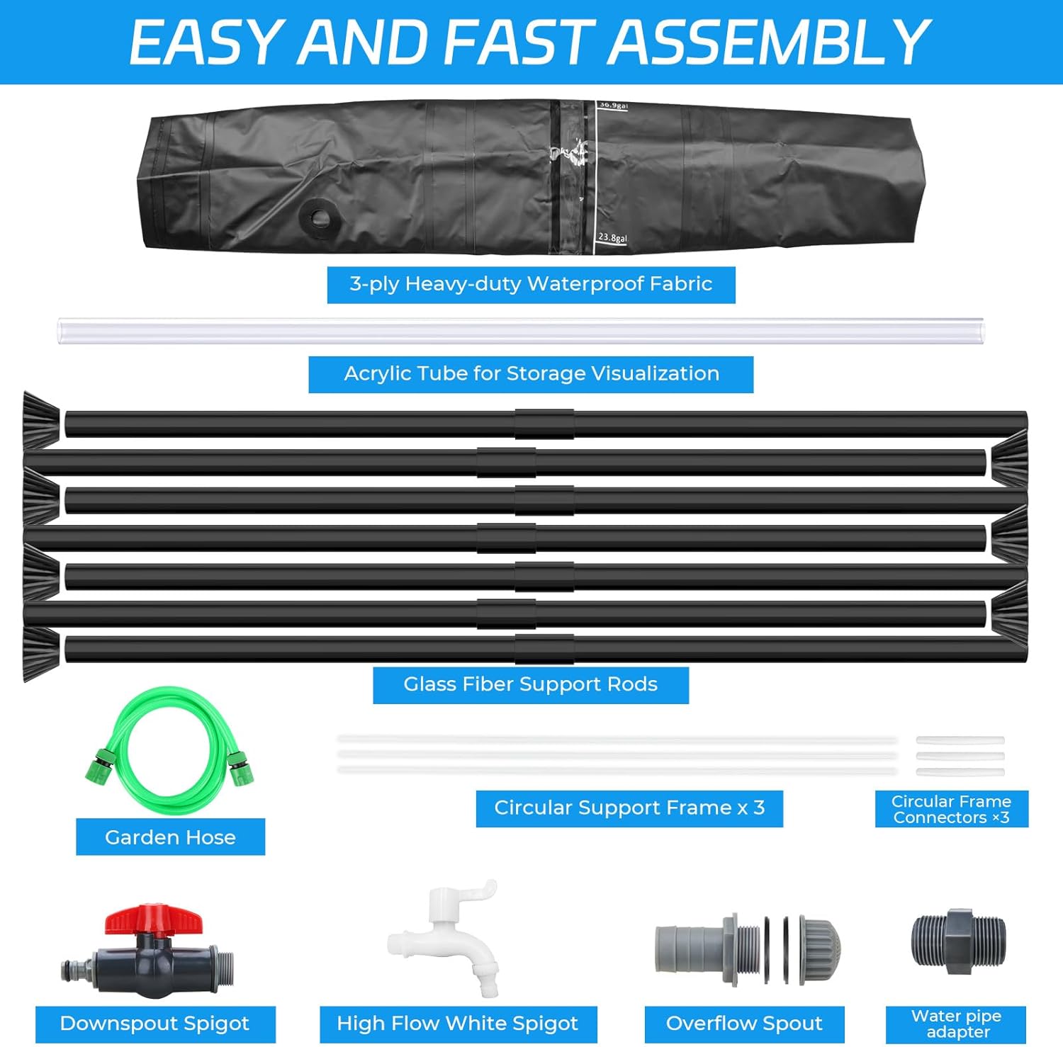 - Superior Stability: Water collection system to collect rainwater from gutterr einforced with Glass fiber Support Rods and a Circular Frame, ensures unrivaled stability. Resistant to extreme weather, rain water collection barrel remains steadfast and upright, preventing any swaying or tipping.
