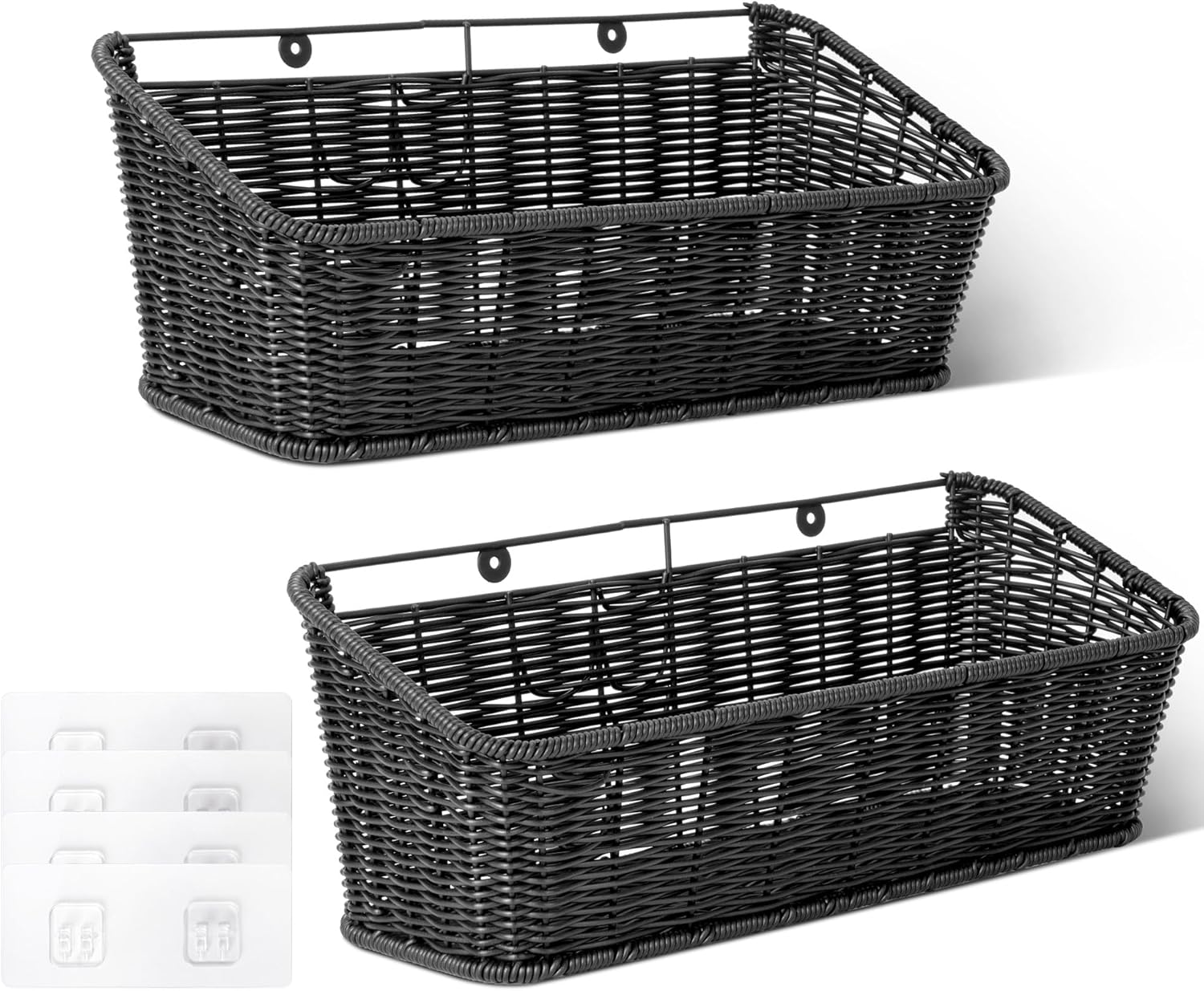 GRANNY SAYS Wicker Hanging Basket, 2 Pack Wall Basket for Kitchen, Fruit and Vegetable Storage Cabinet, Pantry Storage Spice Organization for Cabinet, Adhesive Shelf for Bathroom, Black