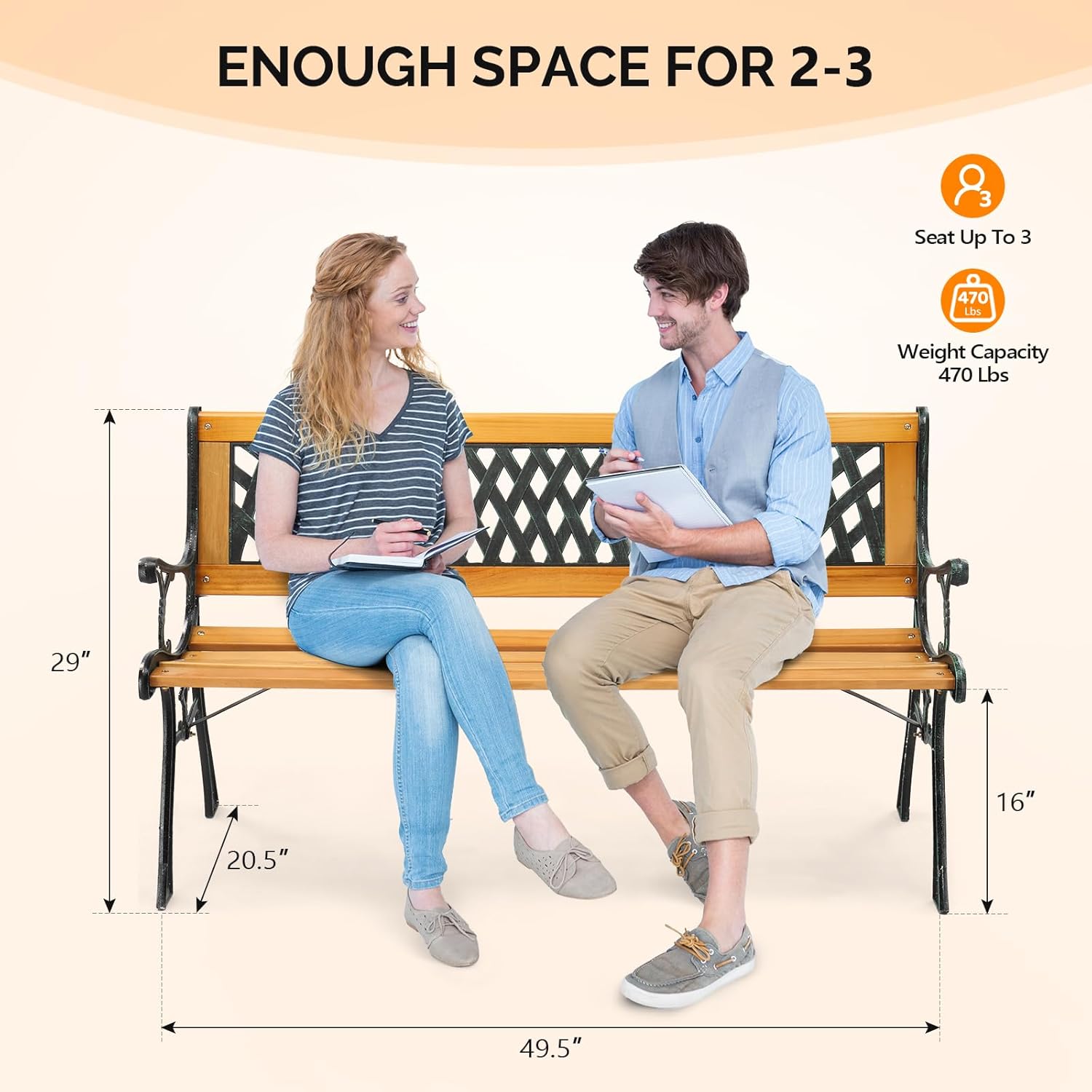 - Sturdy and Rust-Resistant: The metal bench outdoor is constructed from reinforced steel and hardwood, ensuring durability and long-term use. Its rust-resistant finish and PVC backrest pattern enhance resistance to weather elements, making it an ideal and lasting garden fixture