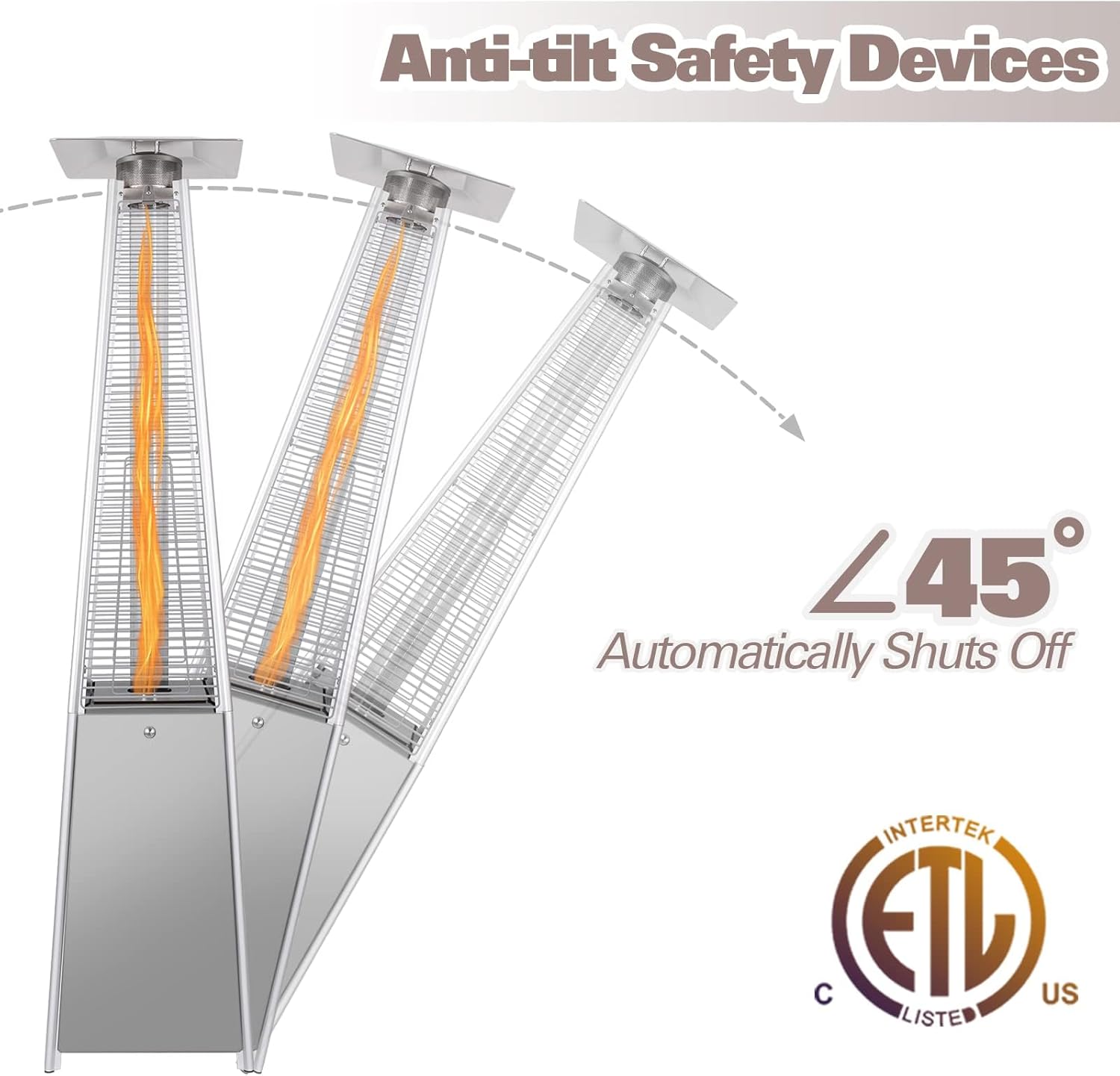 Hykolity 48000 BTU Pyramid Patio Heater, Outdoor Propane Heaters with Wheels and Cover, Glass Tube Propane Patio Heater for Backyard, Garden, Porch and Pool, Silver Grey