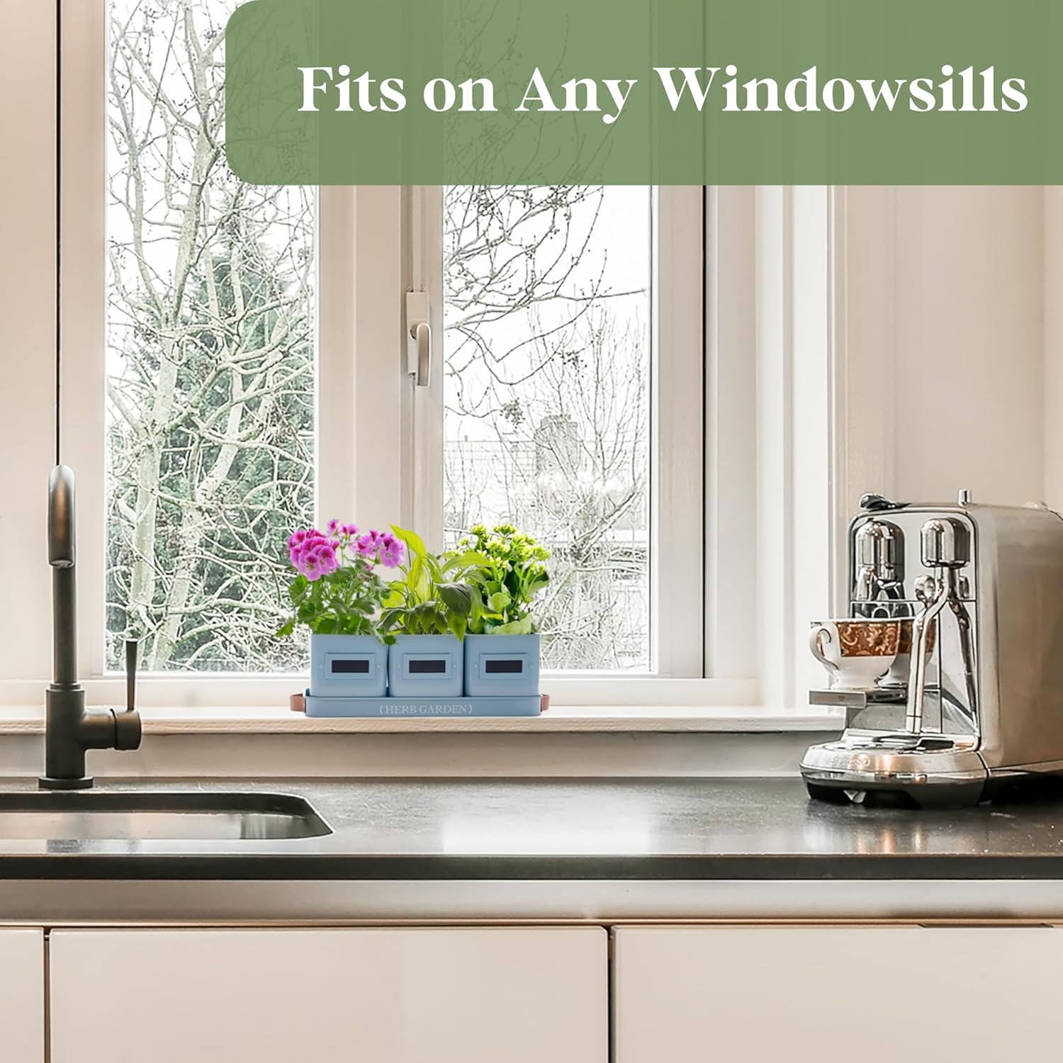 PERFNIQUE Indoor Herb Garden, Herb Garden Planter Set with Tray, Farmhouse Indoor Plant Pots, Windowsill Herb Garden with Drainage(Planter only) for Indoor/Outdoor, Window Pots(Sky Blue)