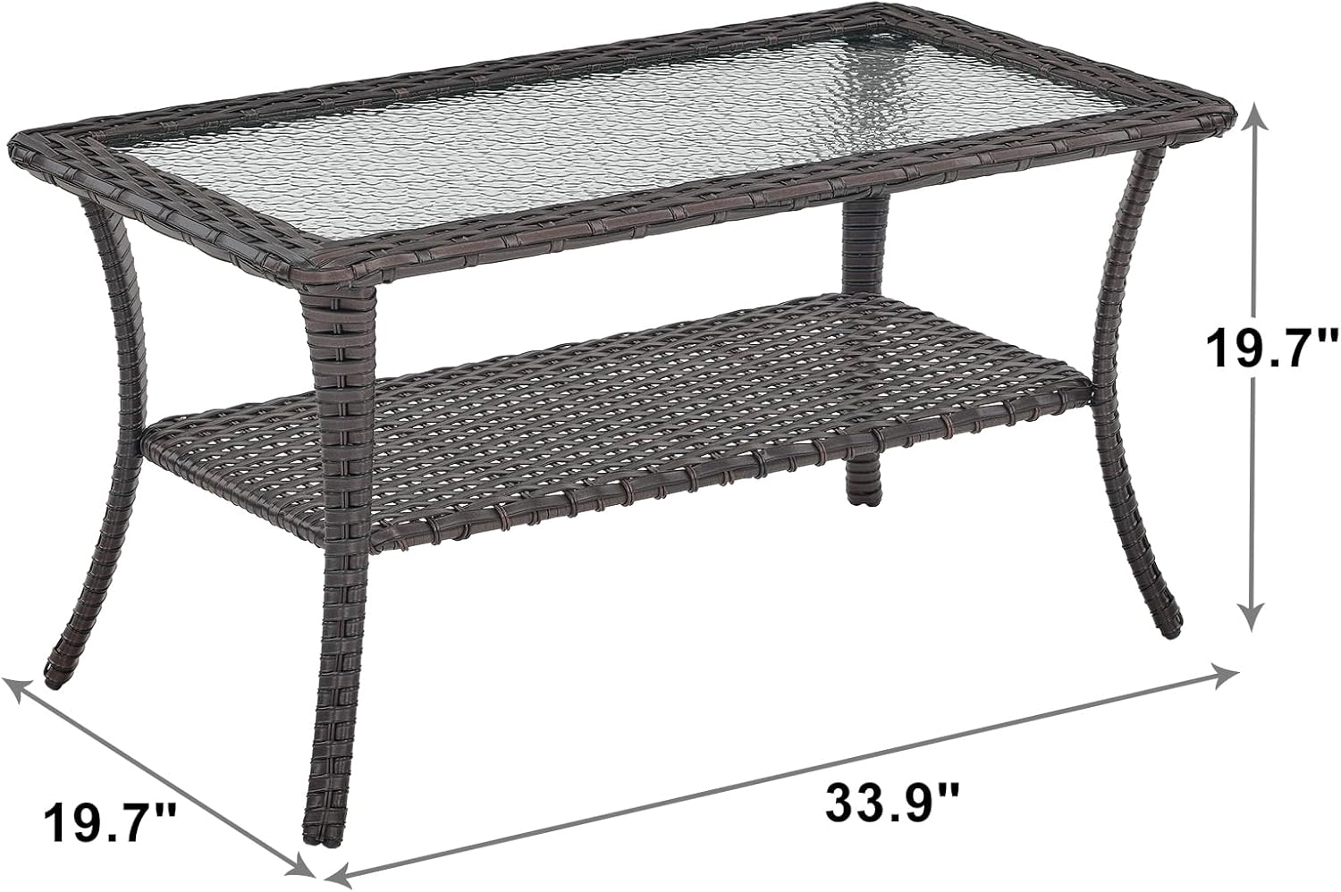 - QUALITY & DURABLE- Constructed with heavy duty powder-coated steel frame and all-weather wicker,this outdoor patio coffee table is water-proof and rust-proof,ideal for long-lasting outside area use.Tempered glass table top is easy to clean.
