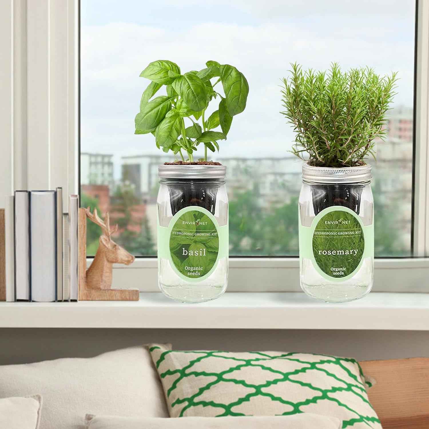 - Mason jar design: The herb growing kit comes with two mason jars, the jars are perfect for growing herbs on your kitchen windowsill or any other sunny spot in your home.