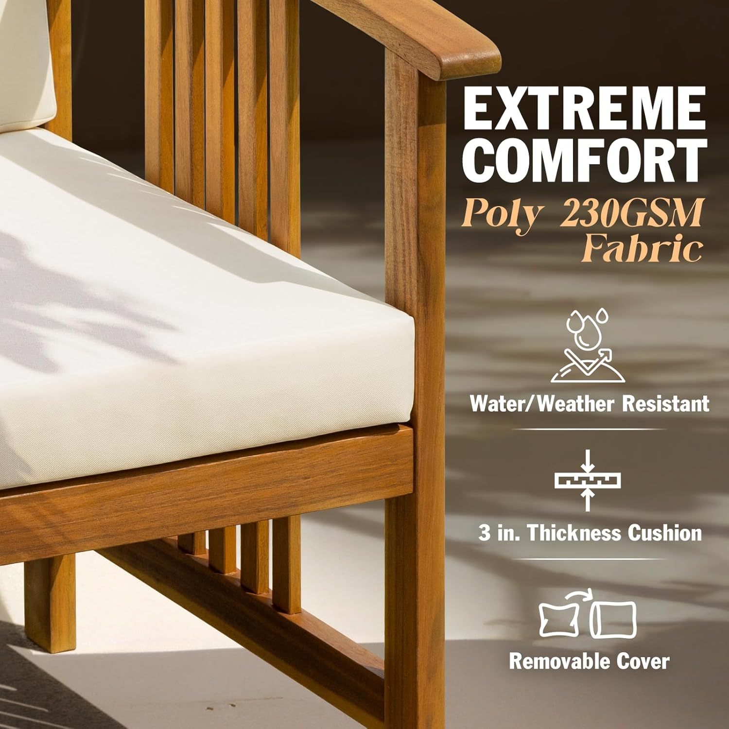 - Solid Wood Frame for Durability: This patio furniture set is crafted from FSC-certified acacia wood, ensuring rustproof durability, beauty, and prevention of cracking or deforming. It has a large weight capacity—450 lbs for chairs and 225 lbs for the table