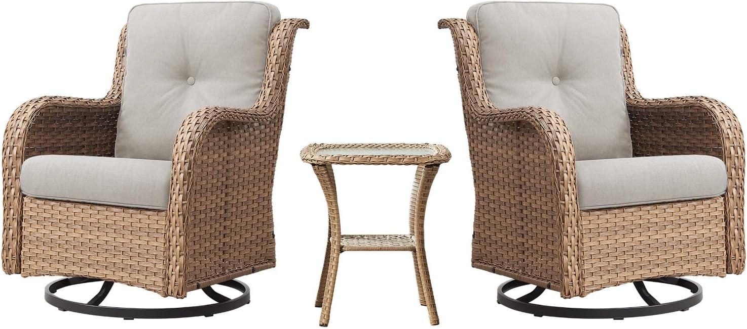 - 360°SWIVEL & SMOOTH GLIDER :Our patio wicker rattan swivel rocker chairs feature a unique combination of 360° swivel and glide back and forth features that allow you to enjoy the great outdoors. Whether you are gathering with friends or enjoying the scenery alone, the swivel and glide feature allows you to easily adjust your position and find the best viewing angle.