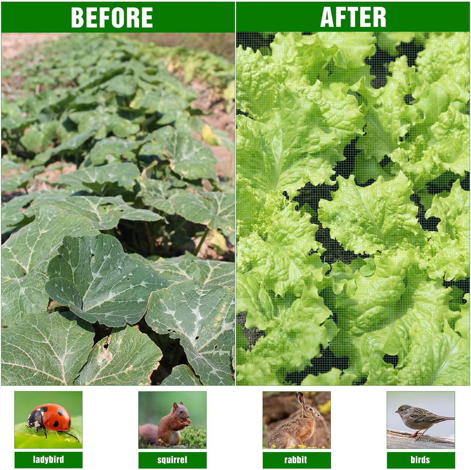 - Easy to Install and Customize: Lightweight yet tough, this insect netting for garden is simple to cut and shape to fit your specific needs; Whether covering large garden plots or smaller patio plants, it's a hassle-free solution that integrates seamlessly with hoops, stakes, or row frames