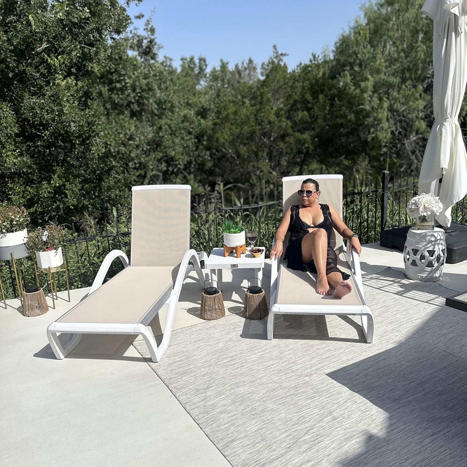 PURPLE LEAF Patio Chaise Lounge Chair Set Outside Aluminum Plastic Stackable Tanning Chairs with Armrests and Side Table for Pool Sunbathing Beach Deck Outdoor Lounger, Beige