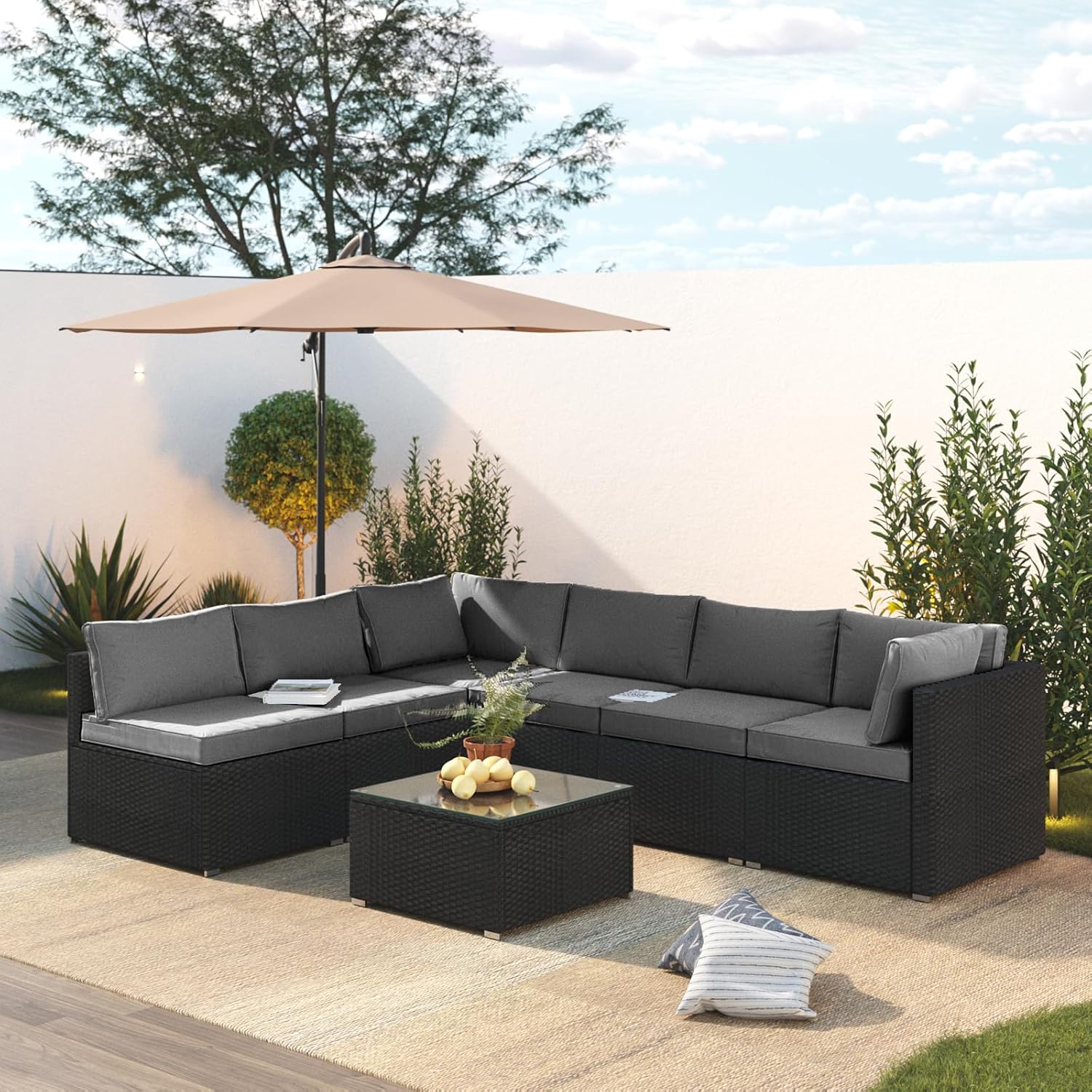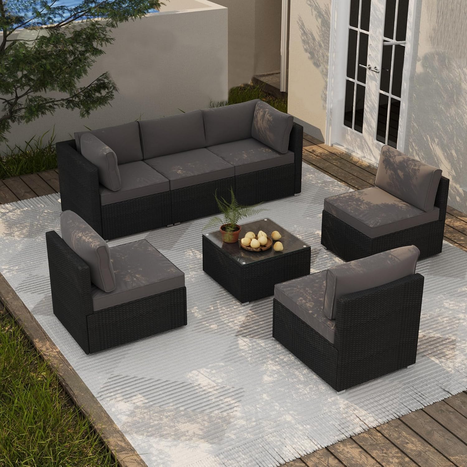 • Stylish Coffee Table for Outdoor Entertaining: The matching wicker coffee table with a tempered glass top completes your patio furniture sectional. It’s perfect for drinks, snacks, or décor, making this outdoor patio set ideal for gatherings, relaxing, and enjoying your back yard furniture set in style