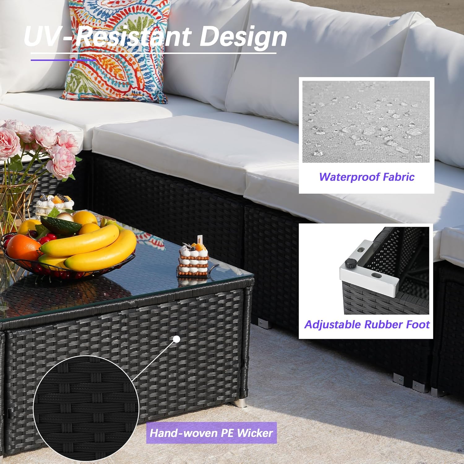 - Stylish Coffee Table for Outdoor Entertaining: The matching wicker coffee table with a tempered glass top completes your patio furniture sectional. It’s perfect for drinks, snacks, or décor, making this outdoor patio set ideal for gatherings, relaxing, and enjoying your back yard furniture set in style