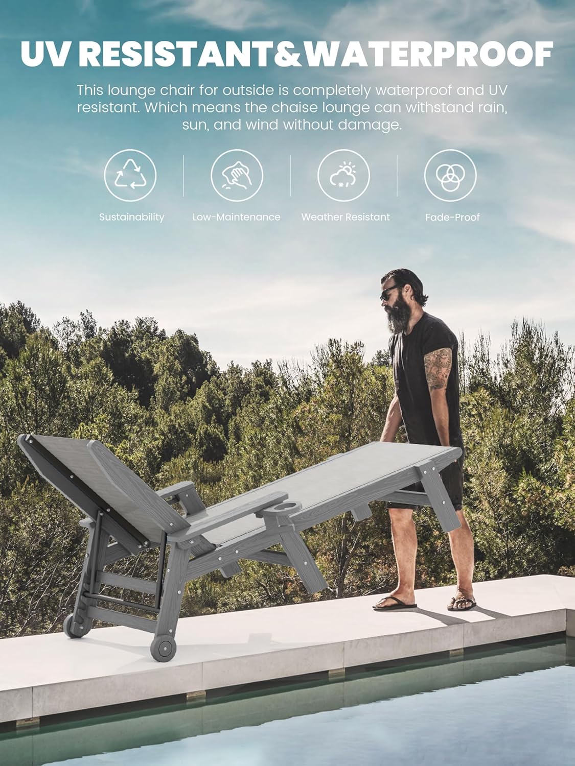 - Easy To Clean & Maintain: Our outdoor lounge chairs are designed for low maintenance. Unlike traditional wood lounge chairs, they can be easily cleaned with simple soapy water and don't require any special treatments, saving you time and effort.