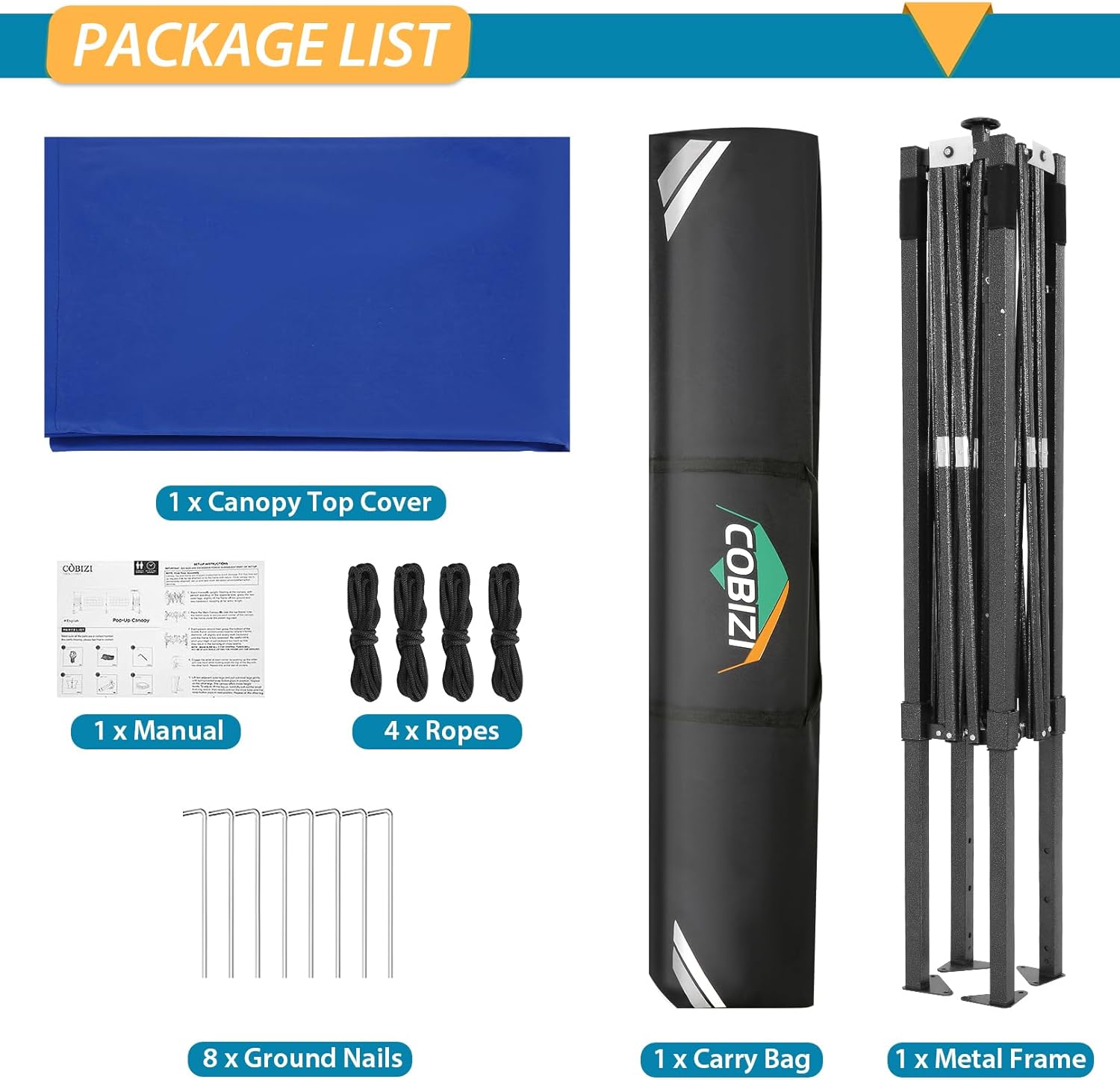 COBIZI 6.6x6.6 Pop Up Canopy Without Sidewall,Heavy Duty Canopy UPF 50+ All Season Wind Waterproof Commercial Outdoor Party Tents for Parties Canopy Gazebo with Storage Bag(6.6 x 6.6 ft Dark Blue)