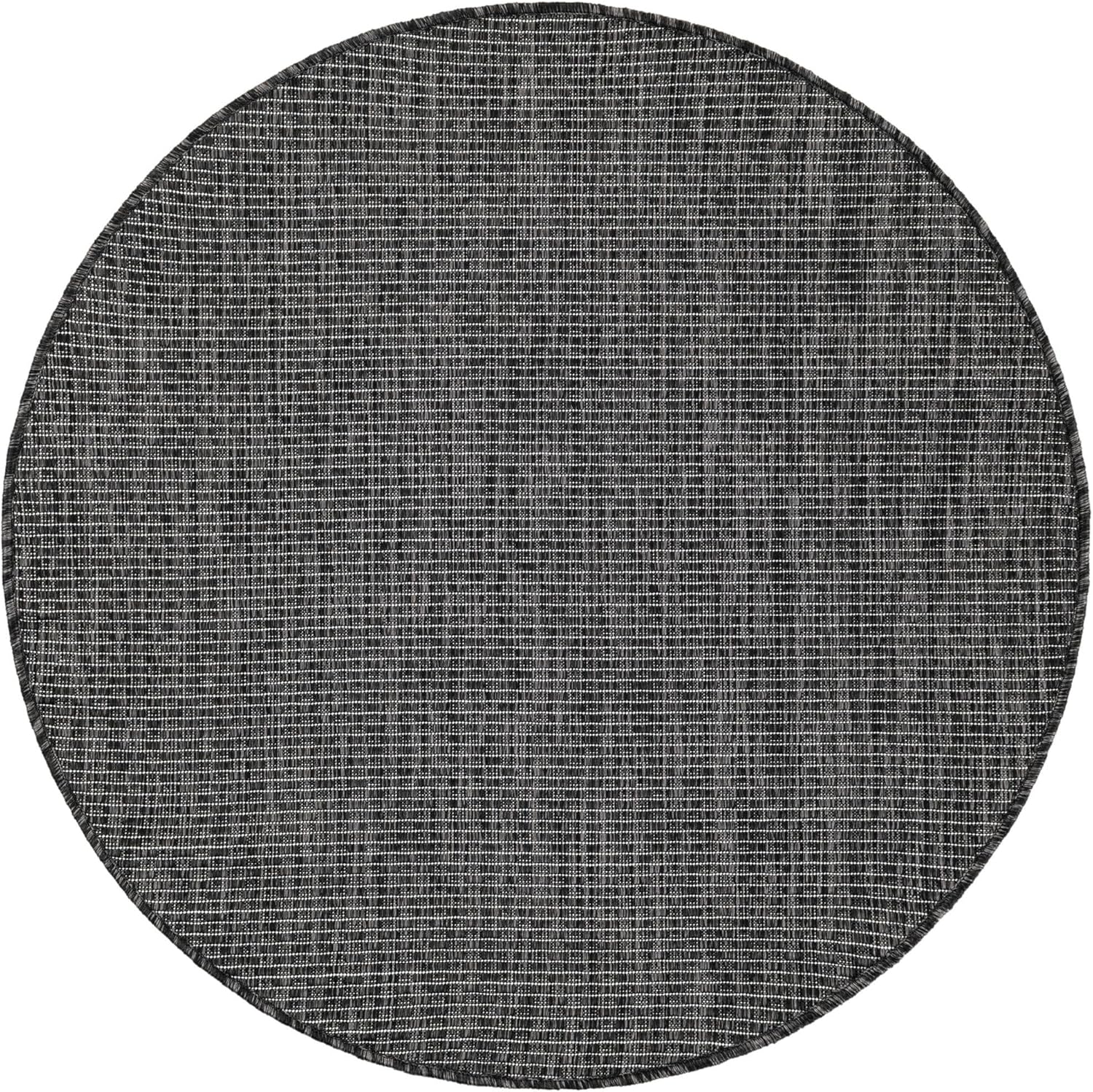 Unique Loom Outdoor Solid Collection Area Rug (3' 3" Round Black/Ivory)
