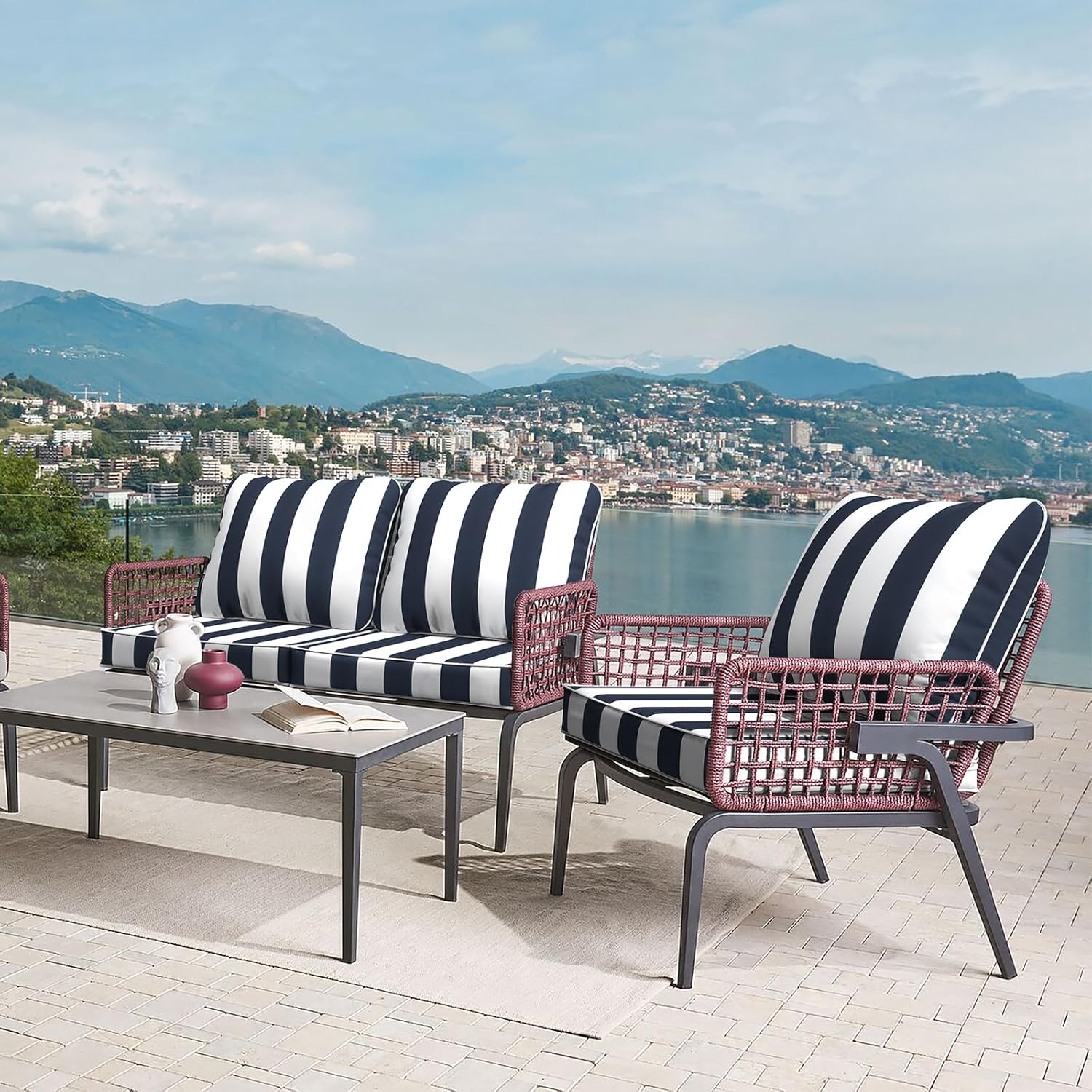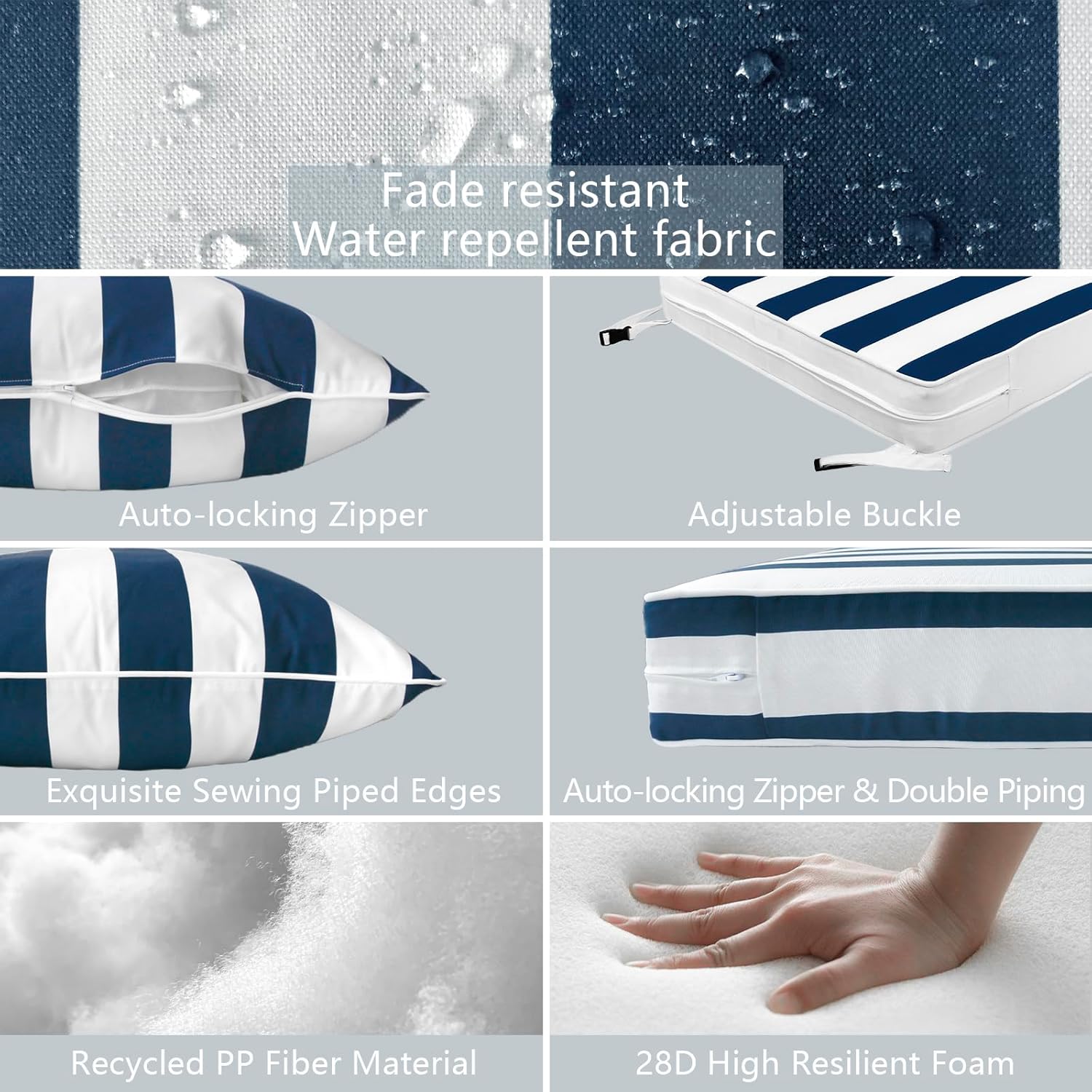 - ⭐Material: Made of 100% durable polyester fabric and soft filling material. It’s water repellent and fade-resistant. Won’t fading under the direct sunlight over 500 hours. Cushions are filled with 28D high resilient foam, overstuffed construction for enhanced comfort and longevity.