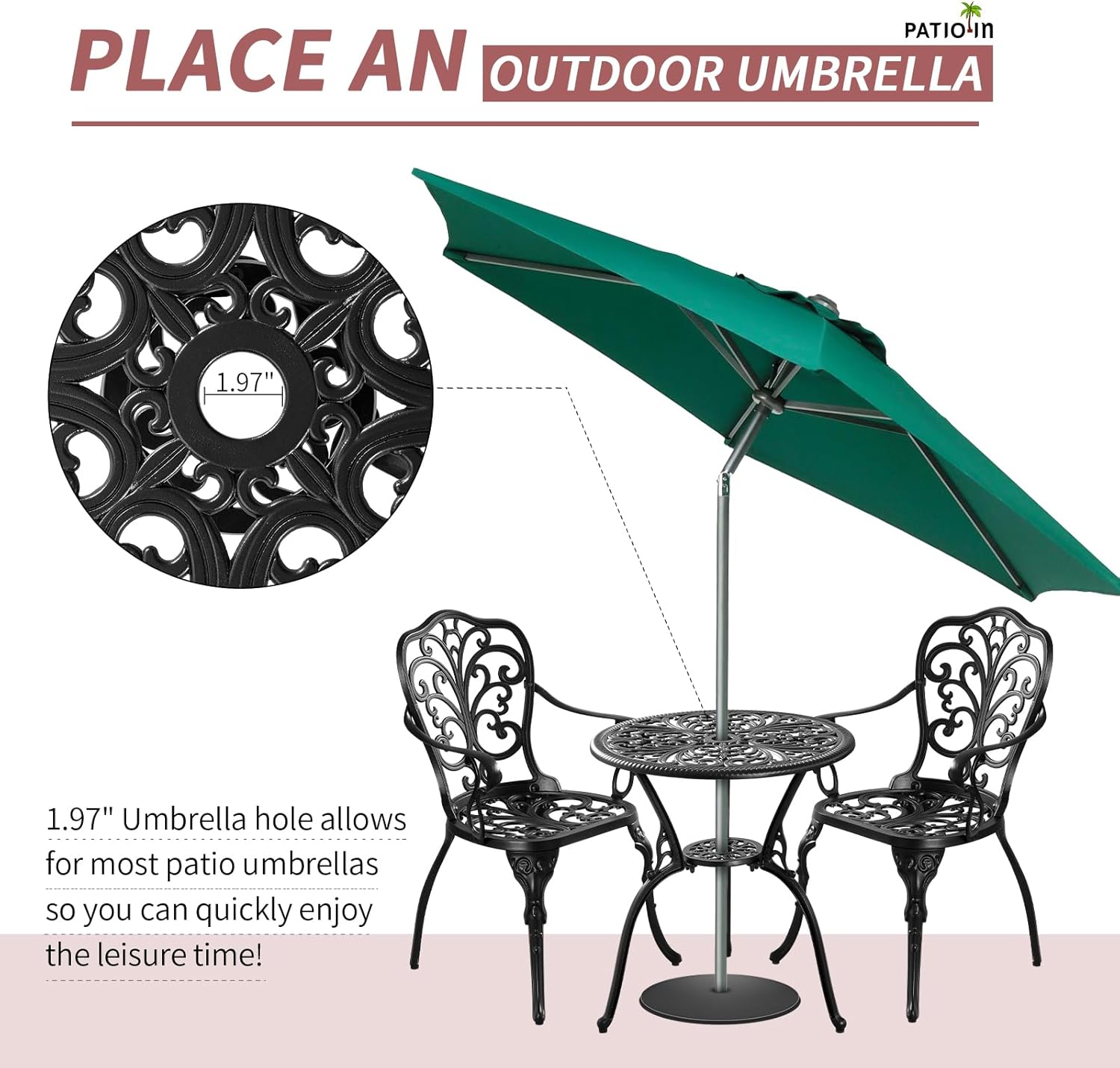 Outdoor Bistro Set 3 Piece, Patio Bistro Set, Cast Aluminum Bistro Set, Patio Table Set with 1.97" Umbrella Hole for Yard, Deck, Front Porch