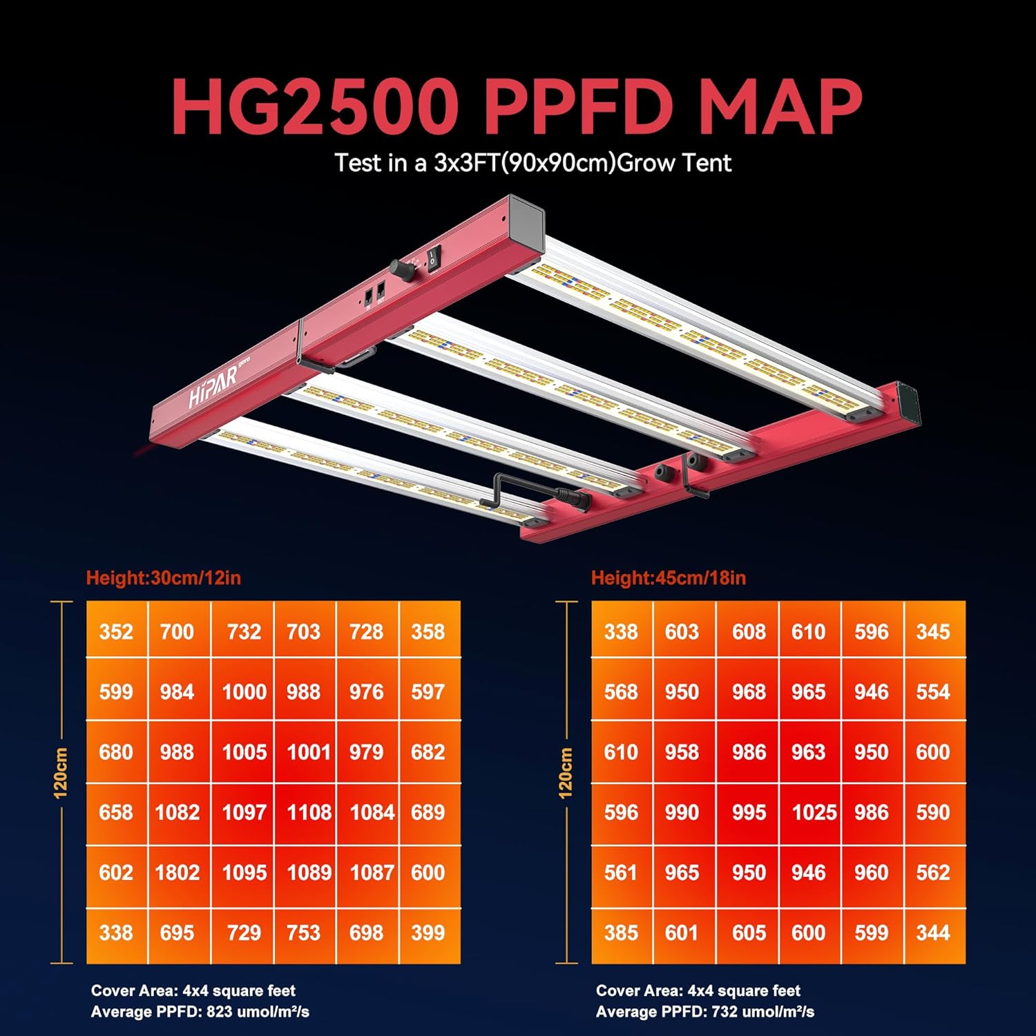 - 【PLUG AND PLAY & 3 YEARS ASSURANCE】: Foldable bar light,easy installation,open box and plug & play. Hipar HG-2500 LED grow lights offer 3 years assurance, professional technical support.Have questions or concerns? Reach out to our customer service team for assistance. Your satisfaction is our priority