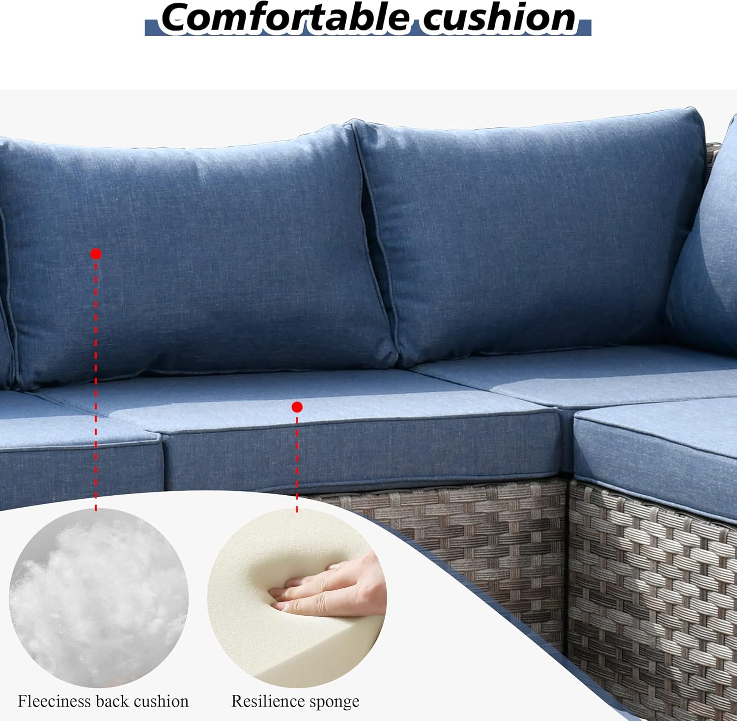 HOOOWOOO 13 Piece Modular Patio Outdoor Sectional Furniture Set with Gas Propane Fire Pit Table,Wicker Conversation Sofa Set,Out Door Couch Set with Wide Arm Outside(Denim Blue)