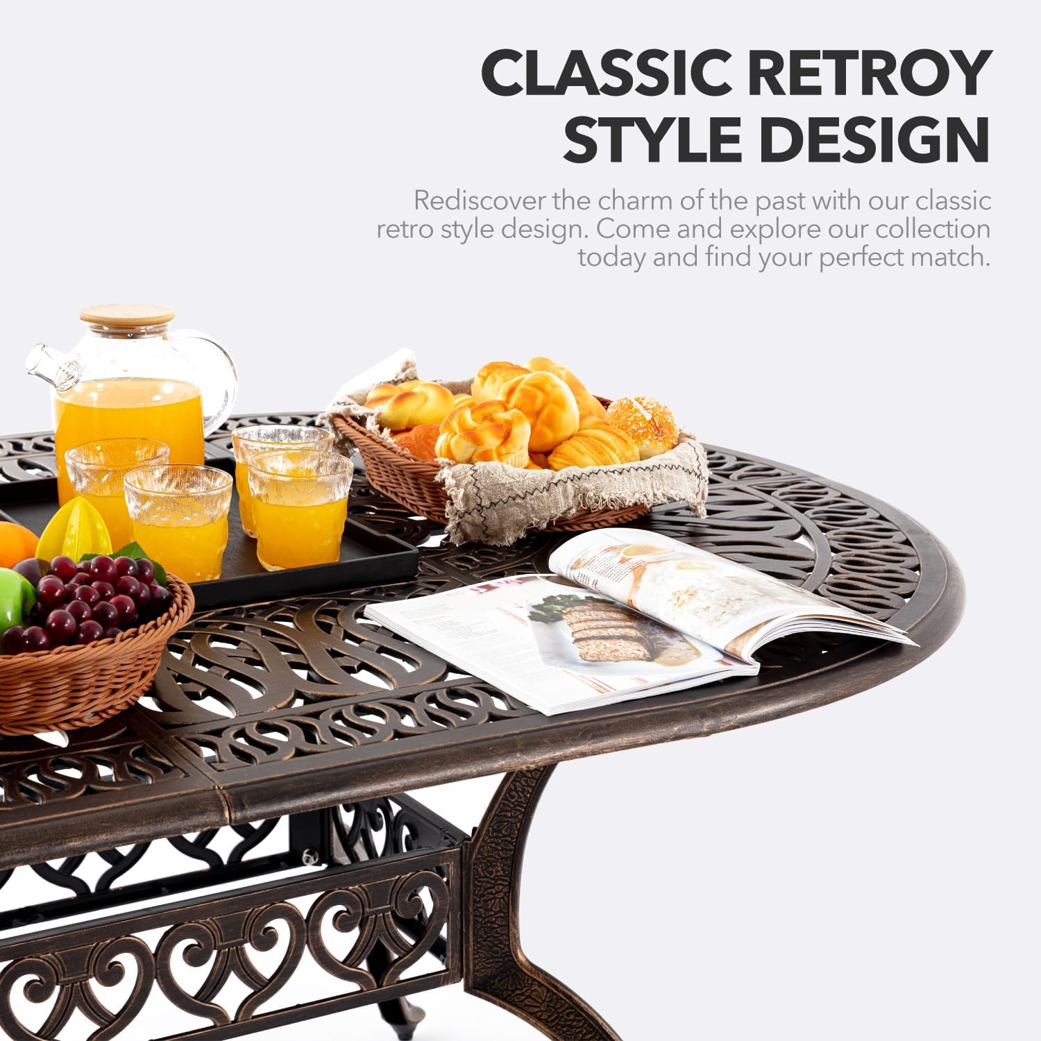- [CLASSIC RETRO STYLE] This 87β Oval outdoor dining table exquisite hollow lattice design, combined with the smooth lines of the cast aluminum surface, adds a touch of elegance and luxury to any outdoor scene such as patio or poolside. With accents such as legs and corner, this collection creates an outdoor oasis that evokes comfortable sophistication.