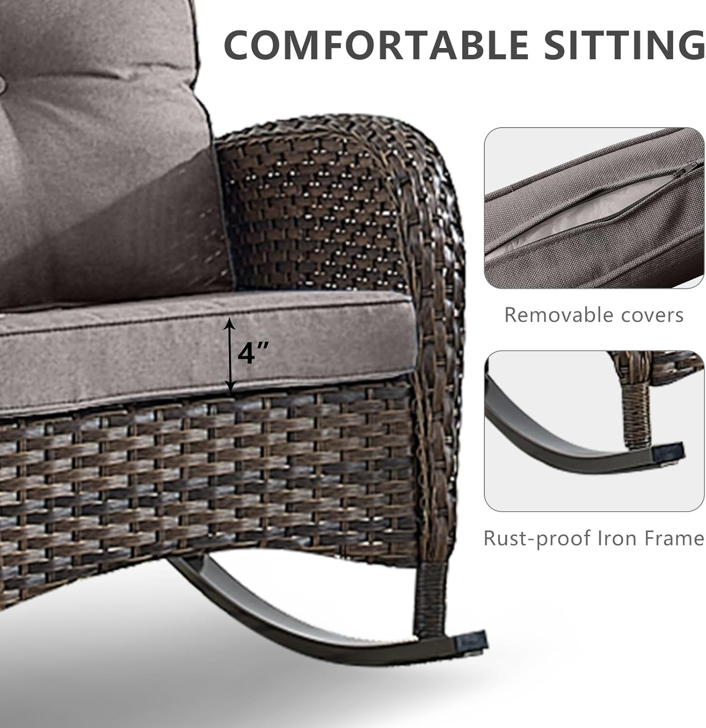 HUMMUH 5-Piece Outdoor Patio Furniture PE Wicker Patio Conversation Set,All-Weather Outdoor Rocking Chairs with Patio Couch Tables for Backyard,Poolside,Deck