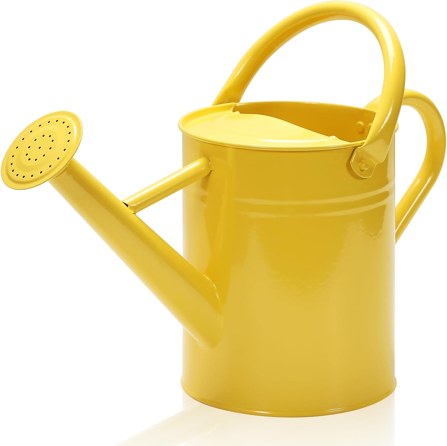 Metal Watering Can with Removable Spout, Galvanized, Perfect for Indoor and Outdoor Use (1 Gallon, Yellow)