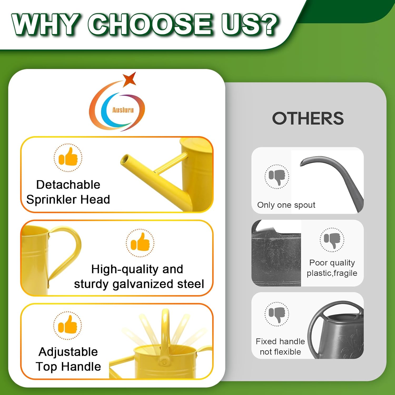 - Stylish and Functional: Whether you're a seasoned gardener or just starting out, this 1-gallon metal watering can is a stylish and functional addition to your gardening arsenal. Its elegant design and high-quality construction make it perfect for both indoor and outdoor use, simplifying the task of watering your plants.