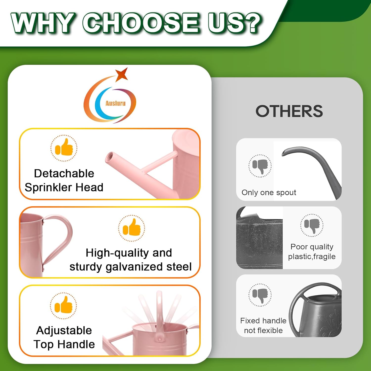 - Versatile Use: From watering indoor and outdoor plants to enhancing the decor of your home or garden, this watering can is a must-have tool for gardening enthusiasts.