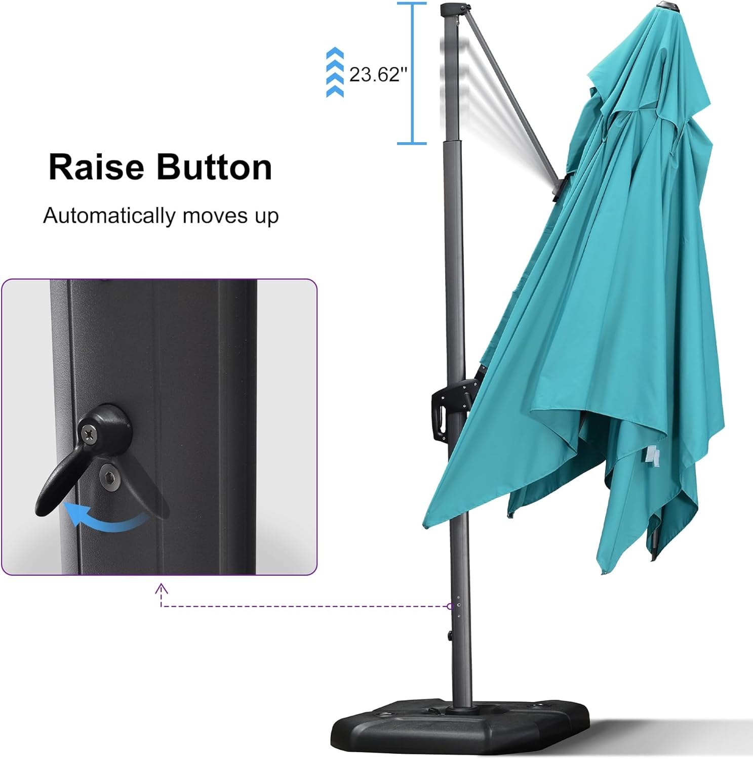 PURPLE LEAF 11.5' X 11.5' Telescopic Patio Umbrella Outdoor Cantilever Umbrella Square Up Down Lifting Offset Umbrella with 360-degree Rotation for Garden Deck Pool Patio Turquiose