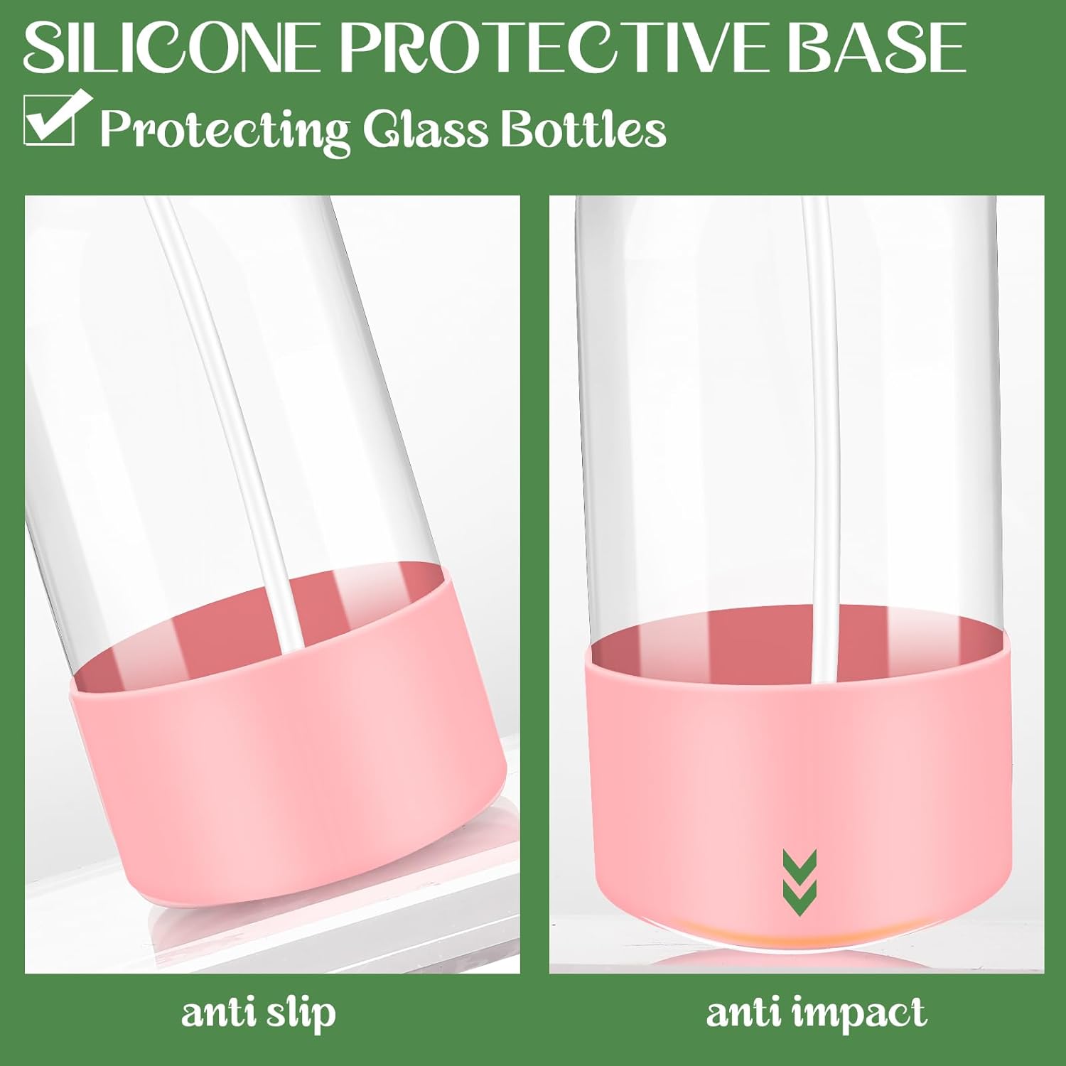 - Detachable Silicone Sleeve: The silicone sleeves included provide excellent grip and stability, prevent slipping on countertops or tiled surfaces, effectively preventing the glass bottles from shattering and offering perfect protection