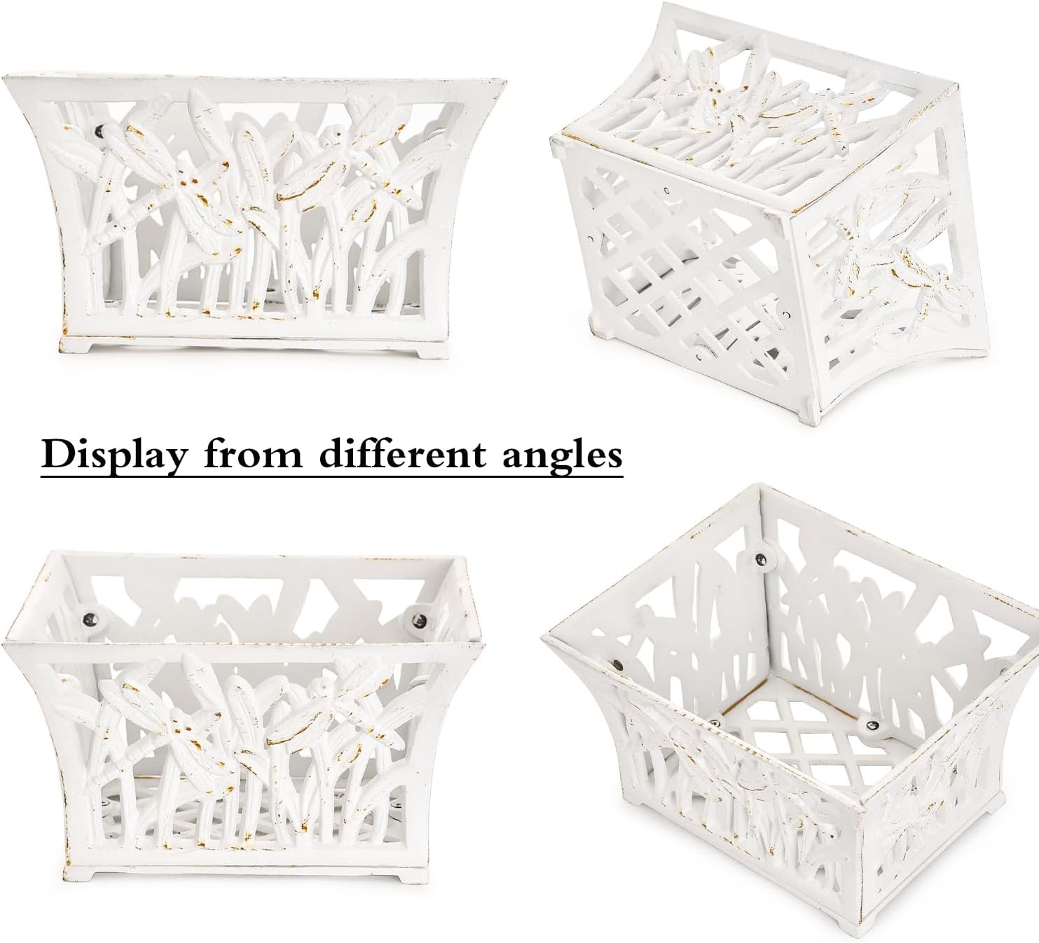- Vintage Design: The metal basket is hollow out with dragonfly pattern design. Rustic and vintage finish great for decorating your home and garden.