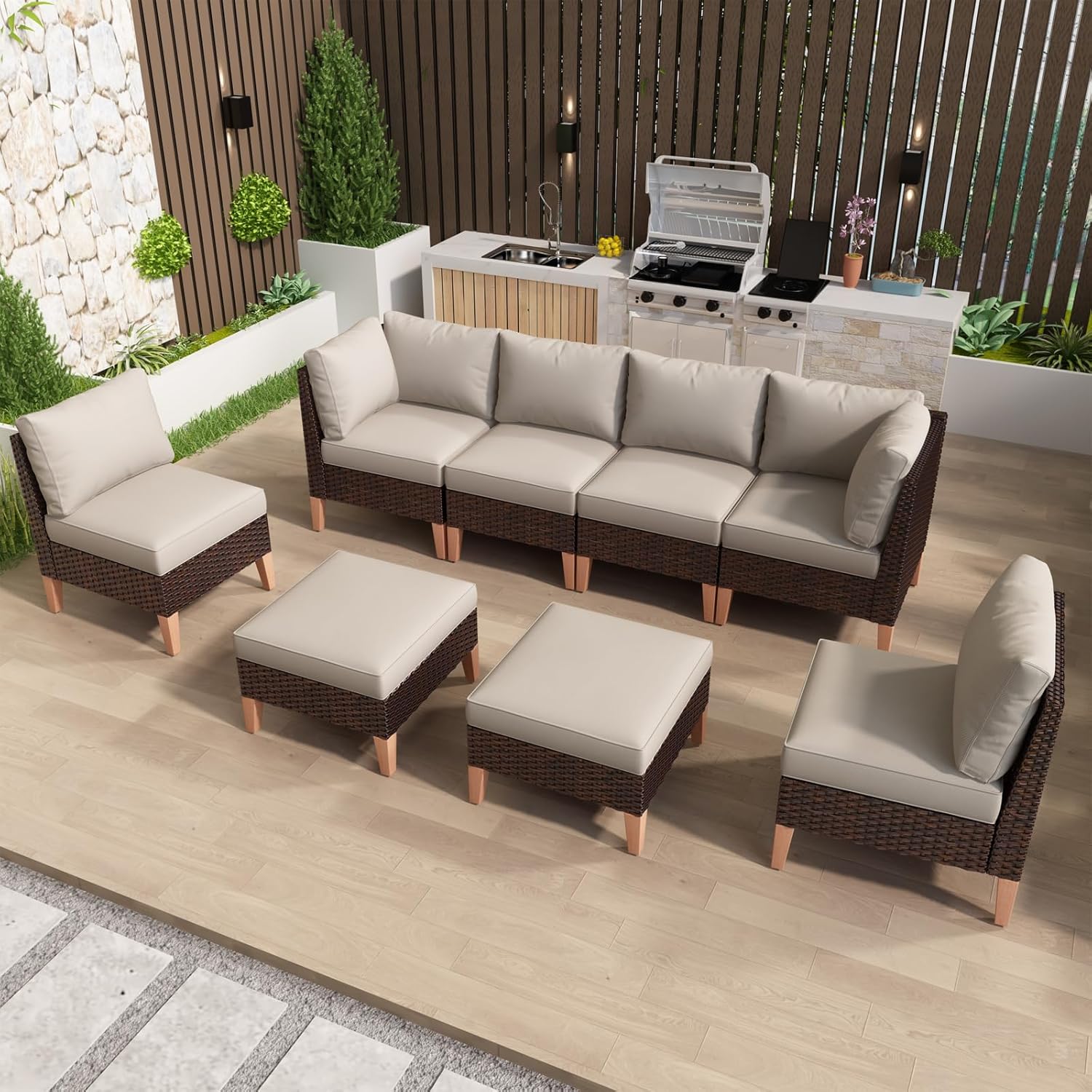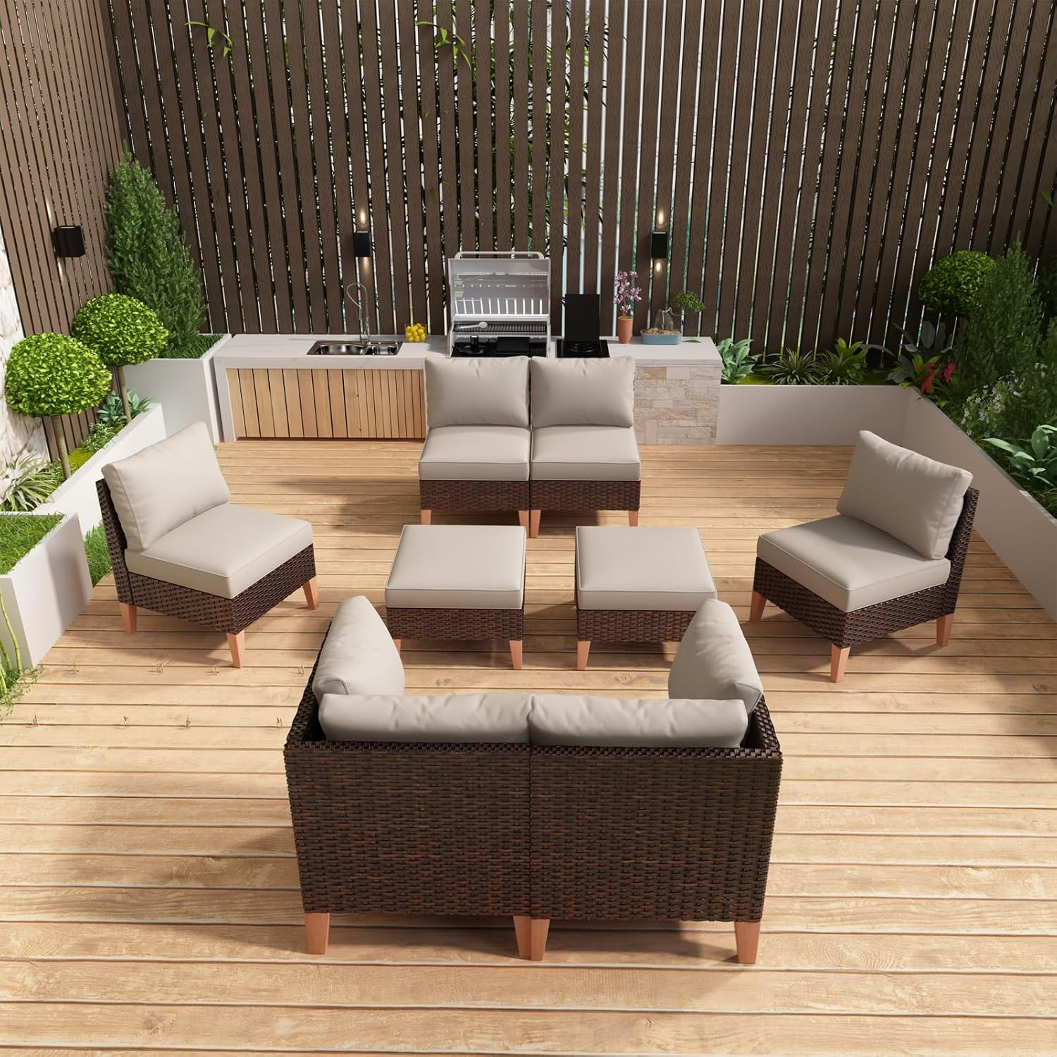 HUMMUH 8 Pieces Patio Furniture Set,Outdoor Modular Sectional Couch Chairs with Ottomans,All Weather PE Wicker Patio Conversation Sets for Garden Porch Backyard
