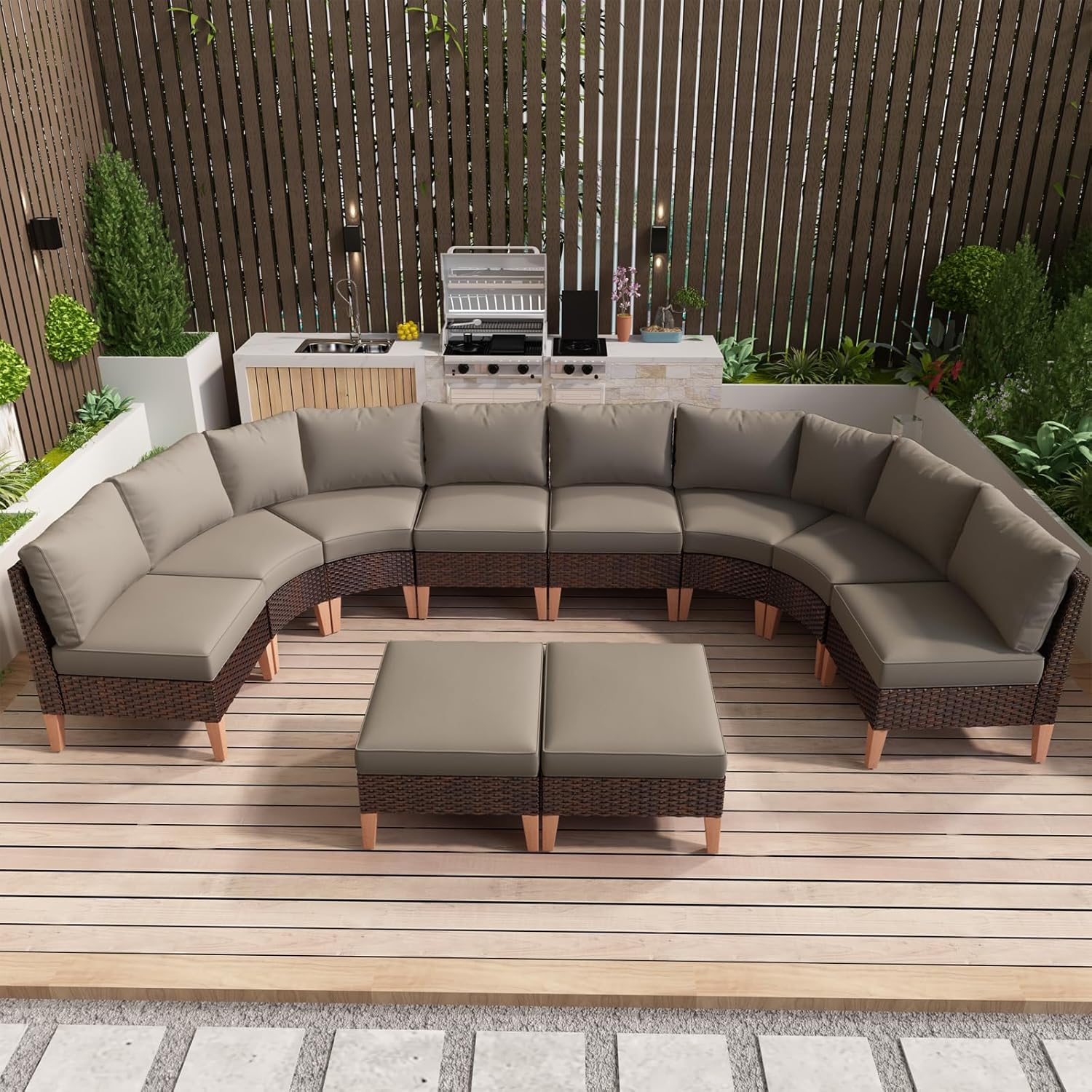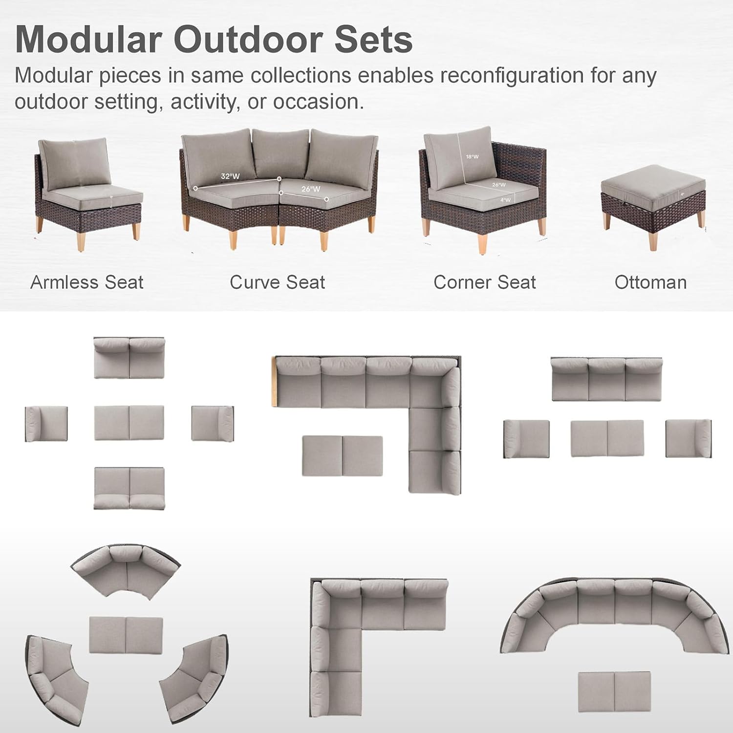 - Free Combination:Our patio furniture set includes individual chairs, corner chairs, and curved double seat sofas and ottomans. you can freely combine these products to meet your needs and space size.Any quality problem please contact us for replacement.