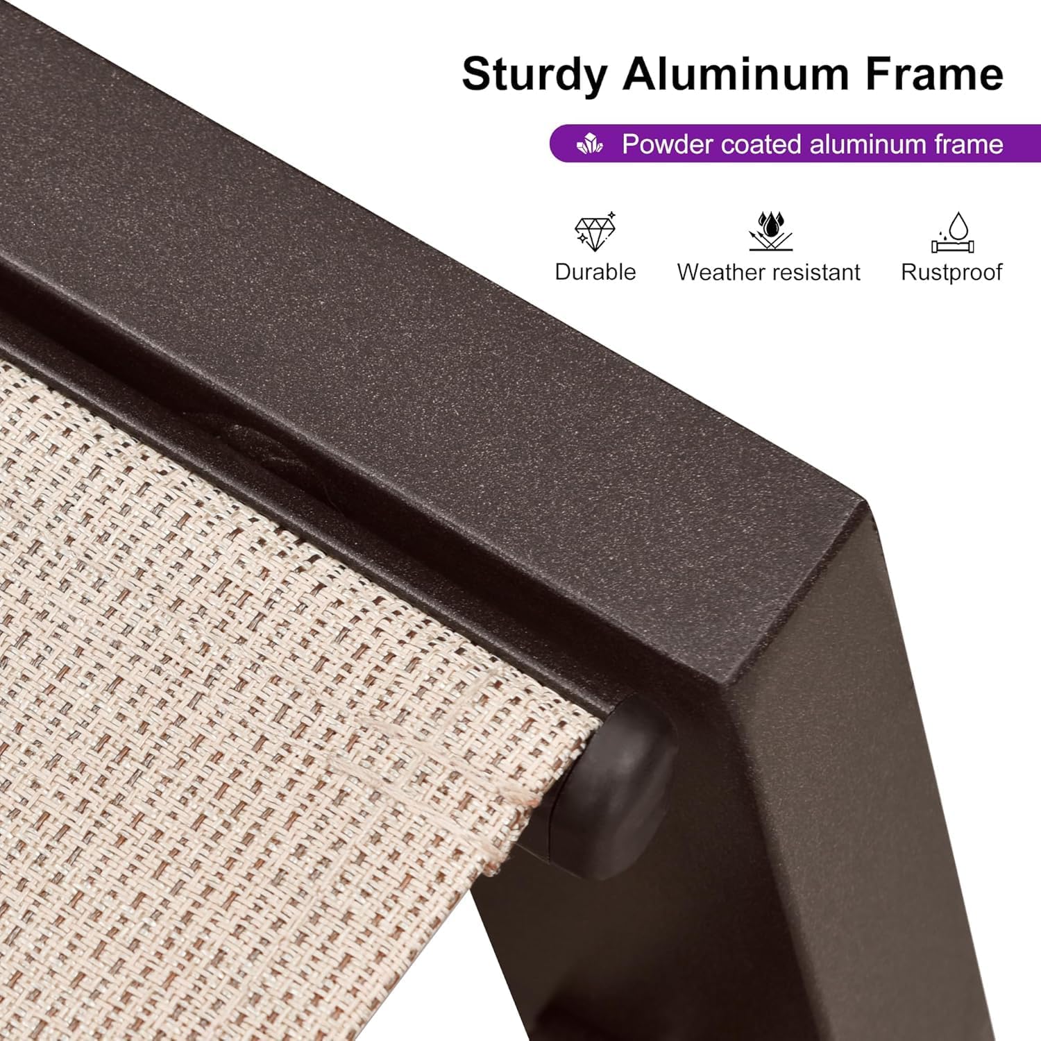 - STURDY FRAME: Rugged powder-coated aluminum frame, the outdoor chaise lounge is rust-proof and durable. Besides, the backrest has a triangular structure that can hold up to 330 pounds, providing you with reliable support.