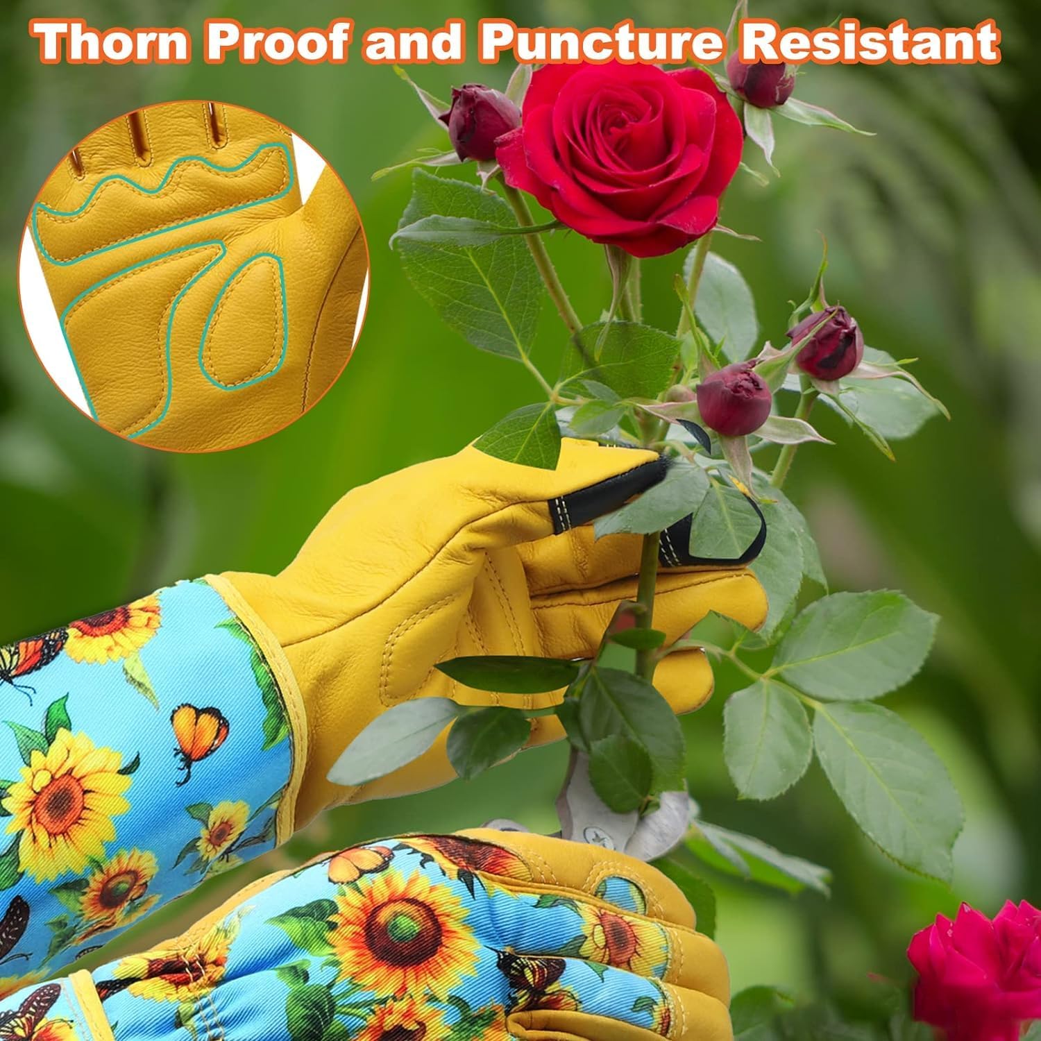 - Best Gardening Gifts for Women:Medium rose pruning gloves fit most women's hands. Unique floral patterns make gardening more fun and make it easier for others to find you in the garden.Cowhide Leather material can reduce hand fatigue for gardeners who enjoy gardening. No doubt, a must have for all women in spring and summer. Ideal for you and your loved ones. Share with families and friends.