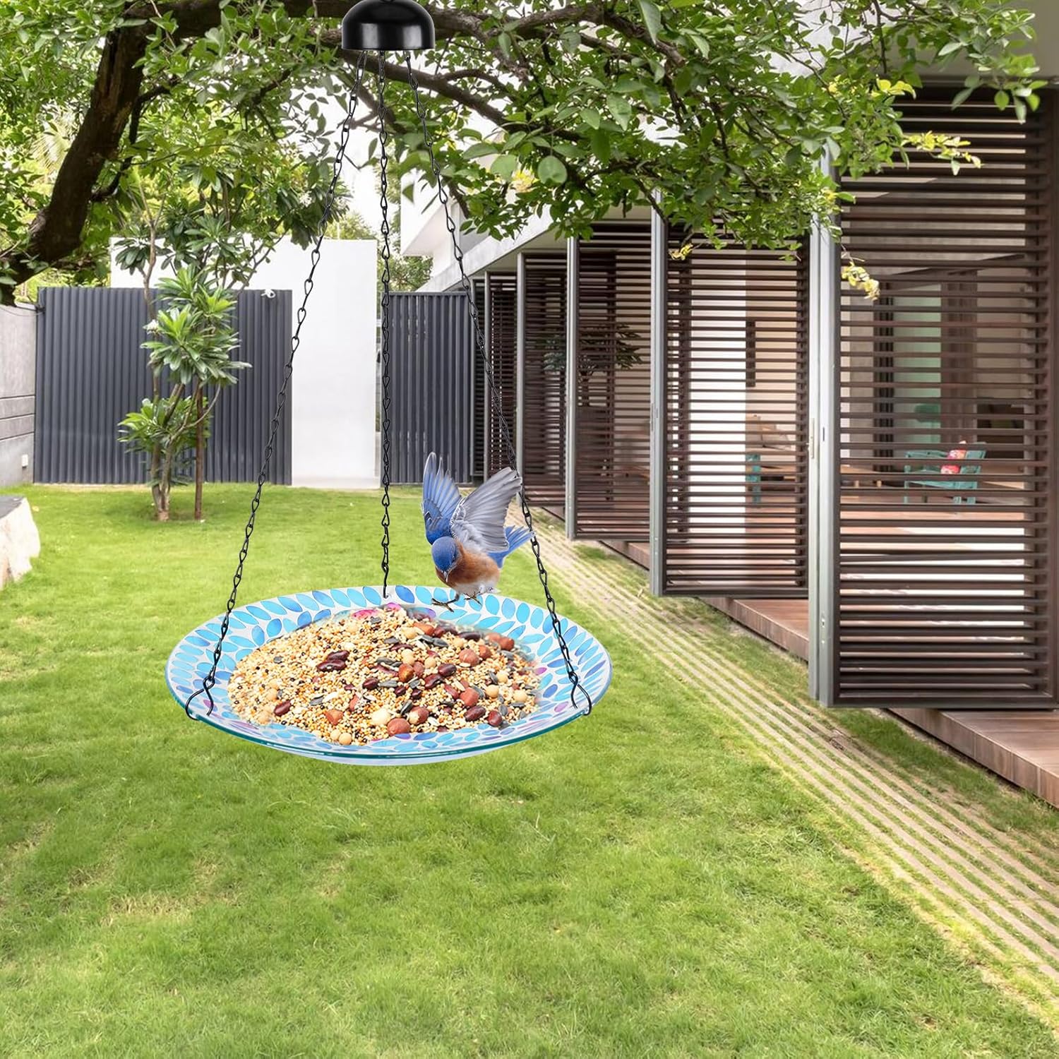 VCUTEKA Hanging Bird Bath, Glass Mosaic Bird Baths for Outdoors Birdfeeder with 21 inch Rust-Proof Chain for Garden Yard Decor, Flower