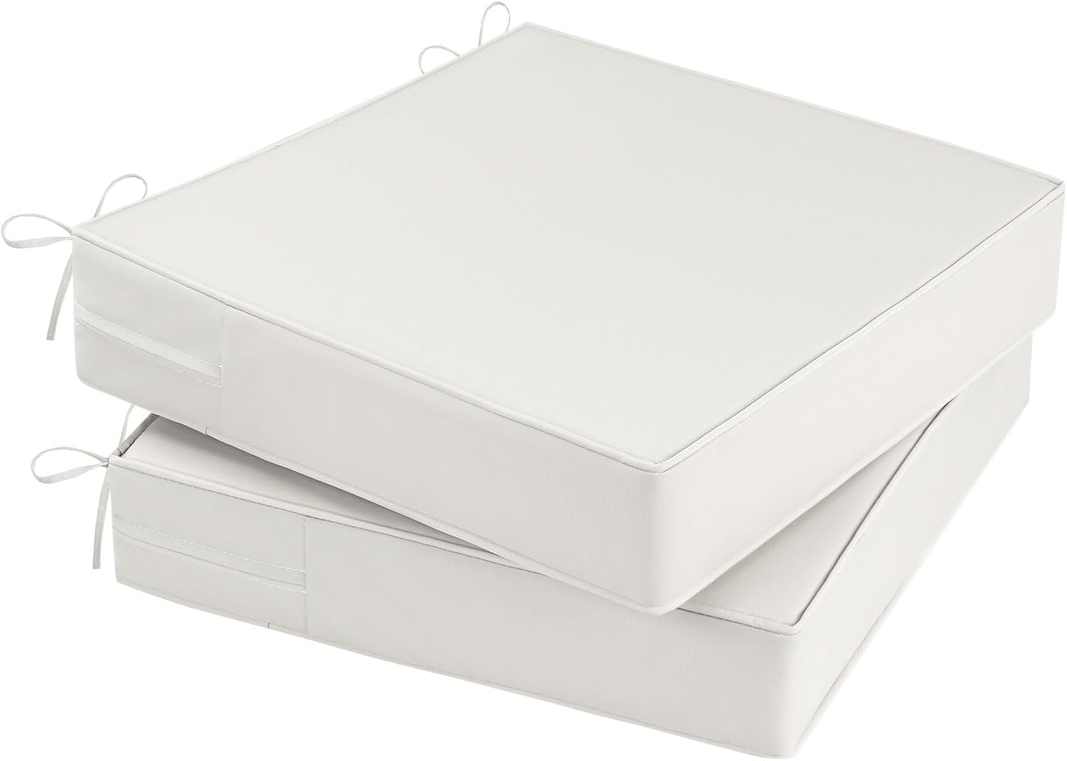 - PERFECT SIZE: Outdoor chair cushion set includes 2 cushions. Cushions measure: 22 inch (W) 22 inch (D) 4 inch (H). Fits most standard size outdoor chairs. Since the outdoor cushions are vacuum-packed, it may take 24-48 hours for the cushion foam to fluff back up after opening the vacuum bag