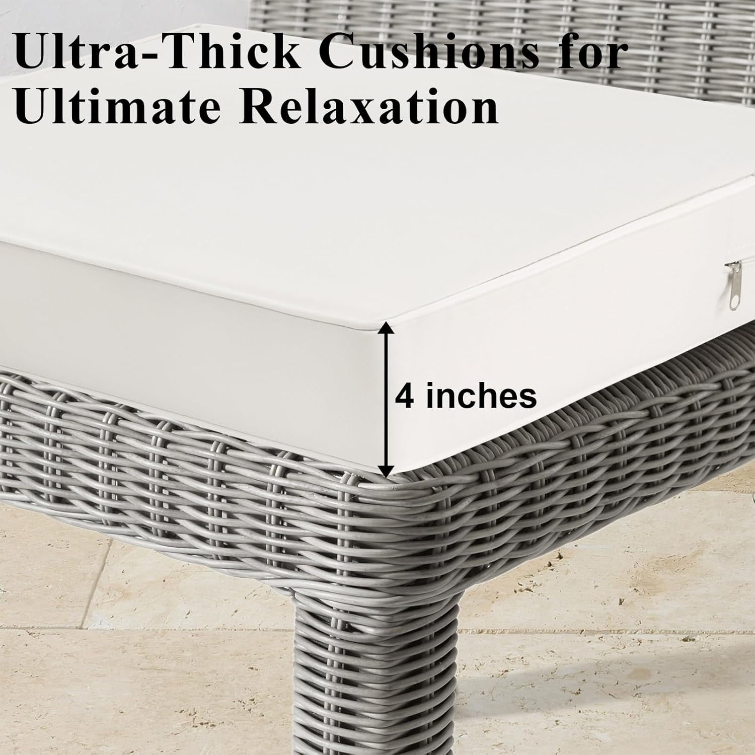 - WATERPROOF FABRIC: The patio chair cushion is made of 600GSM high density polyester waterproof cover with waterproof PU coating inside. All-around waterproof and rainproof to protect the inner sponge