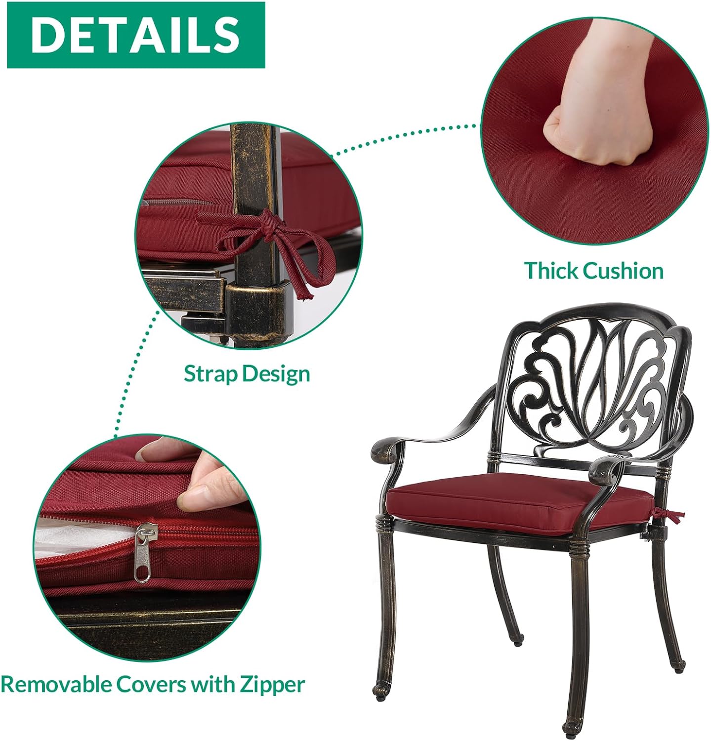 VIVIJASON 3-Piece Patio Bistro Set, All-Weather Cast Aluminum Outdoor Furniture Dining Set, Include 2 Cushioned Chairs and 31" Round Table w/Umbrella Hole for Balcony, Lawn, Backyard, Red Cushion