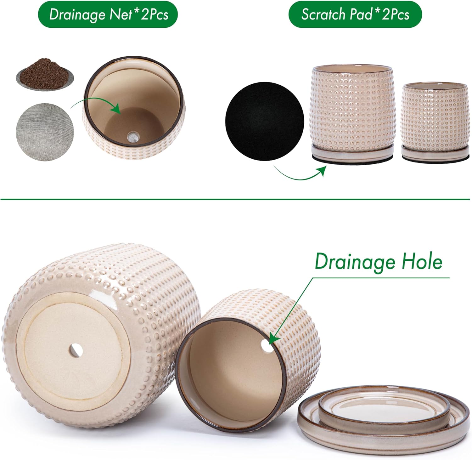 - Drainage Hole & Matching Saucer: Each pot comes with pre-drilled drainage hole and perfectly matching ceramic design tray for small amount of excessive water drain.