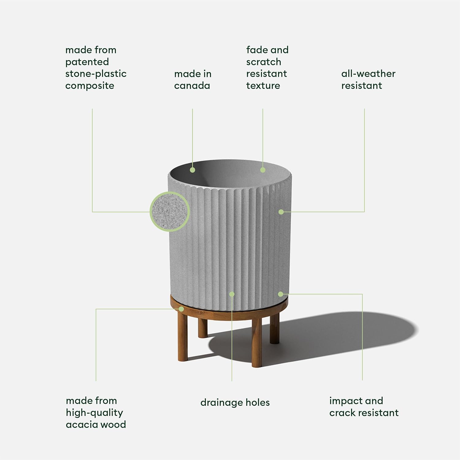 Veradek Demi Series Round Planter w/Stand for Porch/Patio | Durable Plastic-Stone Composite & Wooden Stand | Modern Décor for Tall Plants, Flowers