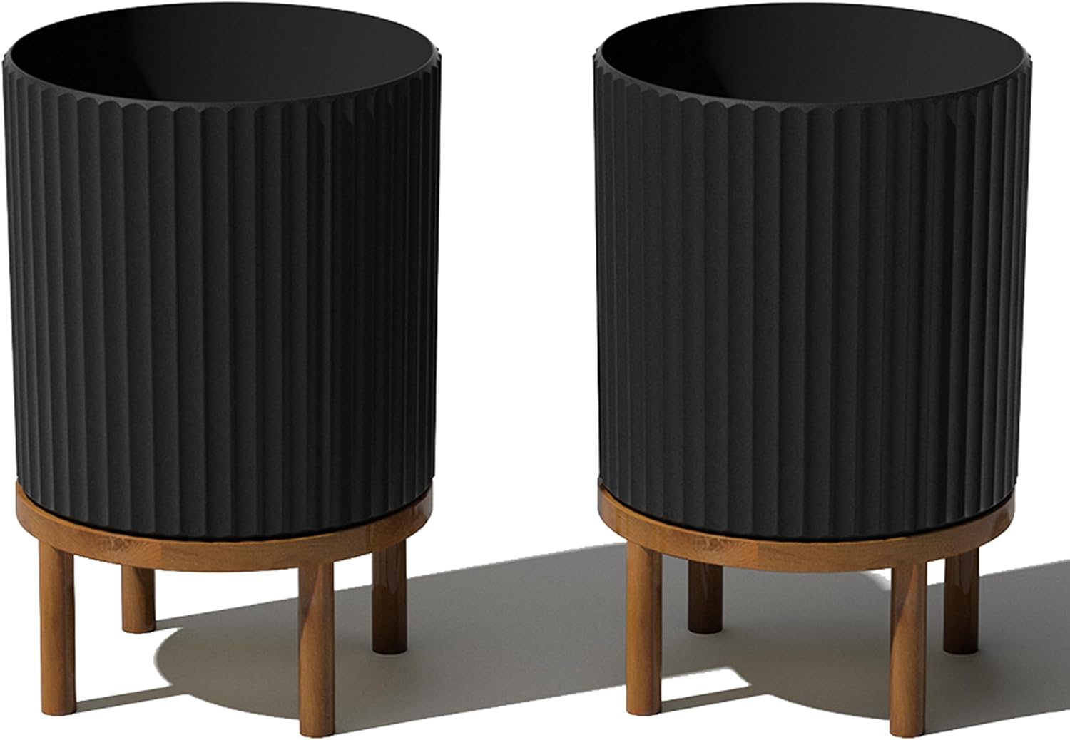 Veradek Demi Series Round Planter w/Stand for Porch/Patio | Durable Plastic-Stone Composite & Wooden Stand | Modern Décor for Tall Plants, Flowers