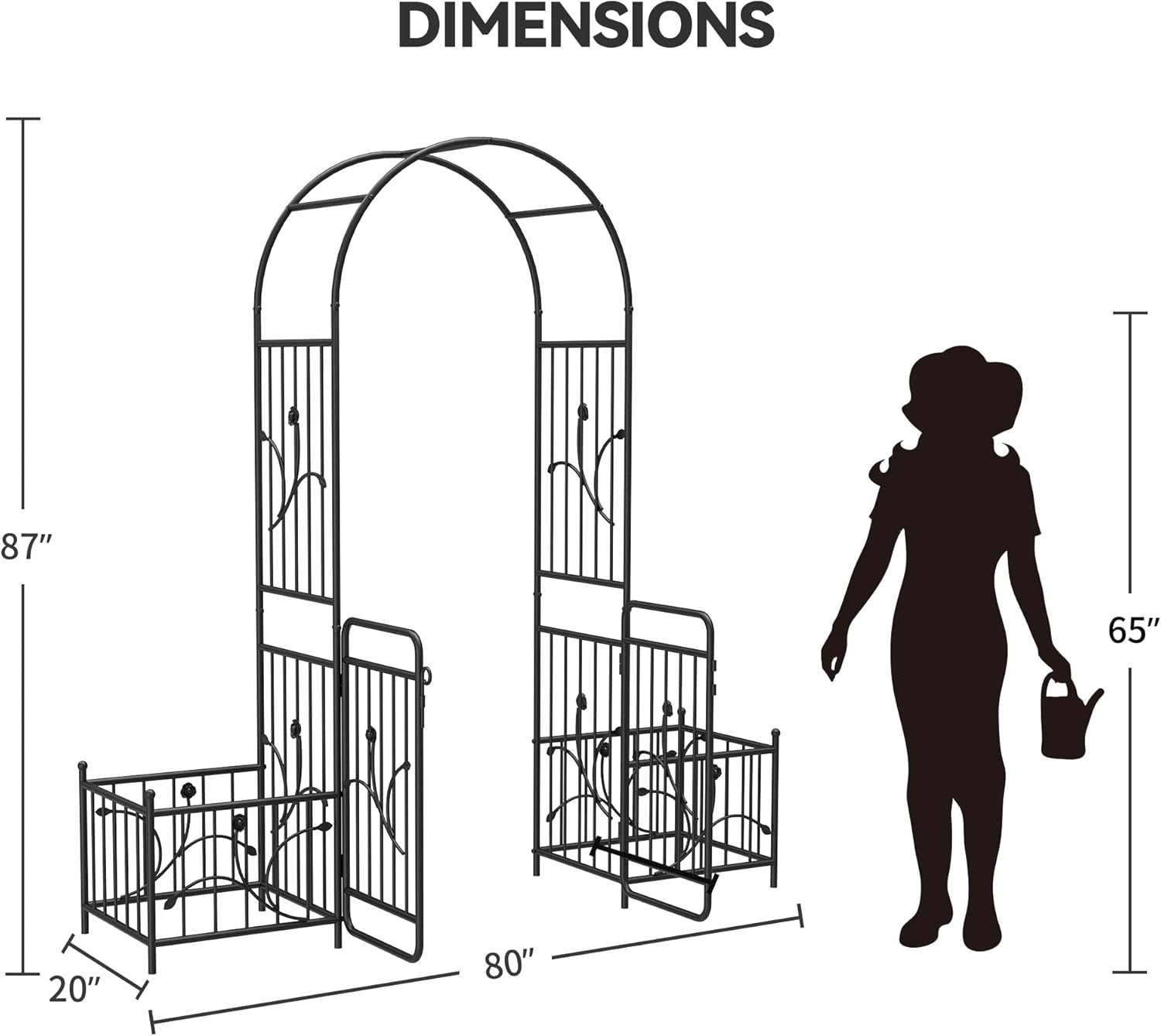 YITAHOME Garden Arbor with Gate and Planter Boxes, 87IN Wedding Arches for Ceremony, Metal Garden Arch for Climbing Plants Outdoor, Black Garden Archway for Lawn, Patio and Backyard