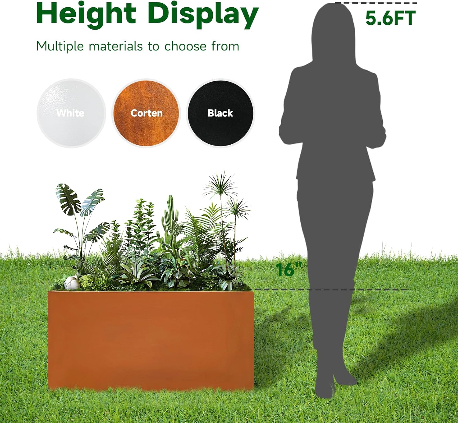 Corten Steel Corner Metal Planter Box Garden Steel Planter Pot for Patio Modern Farmhouse Rustic Design (L36 x W12 x D16, Rusted)