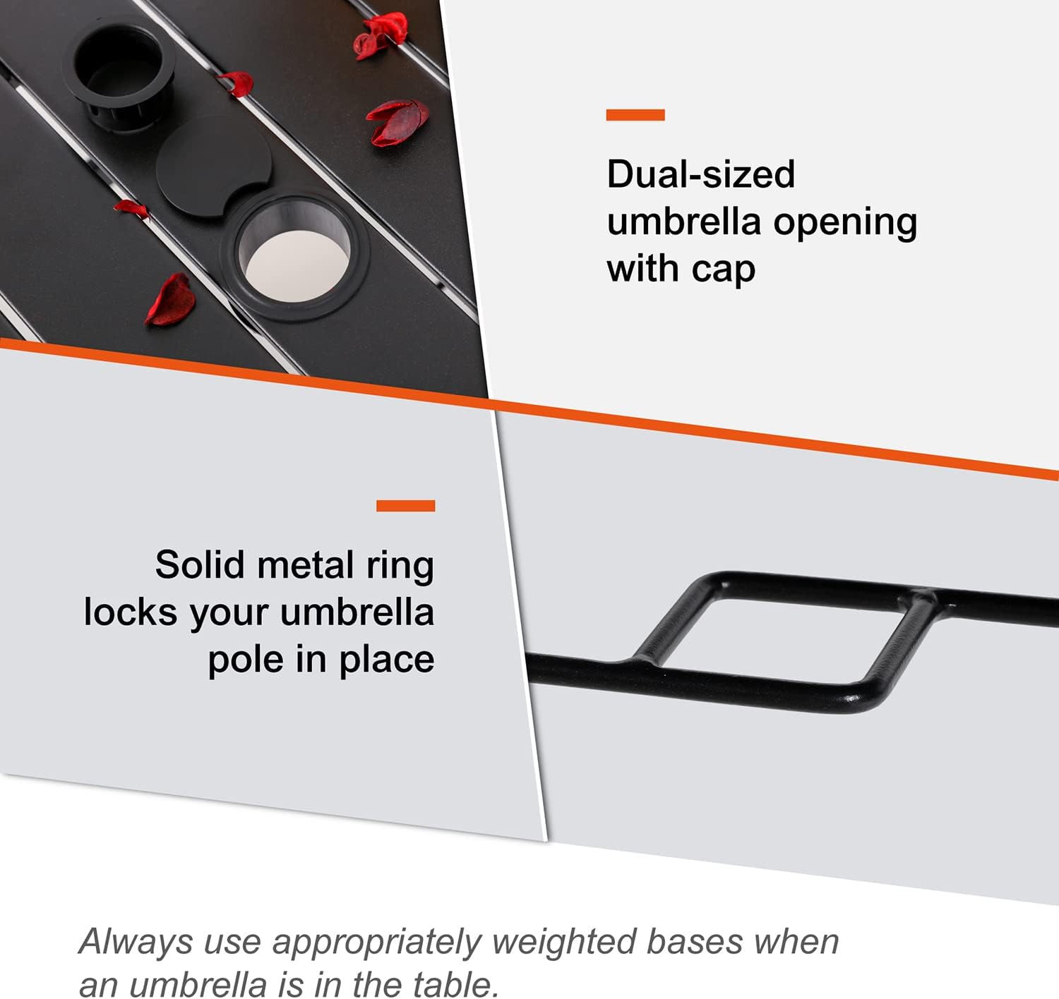 - 【Adjustable Umbrella Hole】: 1.57"-1.9". You can resize the hole by switching the lid, so you can add an appropriate umbrella to protect your food and guests from the bright sun. The metal slatted tabletop leaves enough water seepage gaps, which is easy to clean and won't accumulate water. No need to take more extra special care to maintain the table.