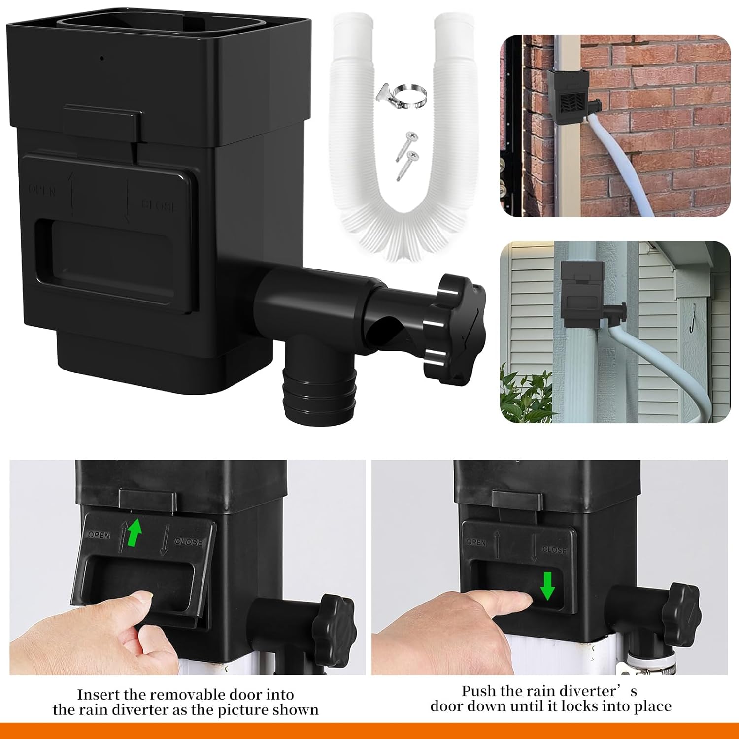 - Enhanced Filtering System:Say goodbye to clogged rainwater collection systems! Our system is equipped with a removable filter window and filter net, allowing for easy cleaning of debris and residue, ensuring crystal-clear rainwater collection.