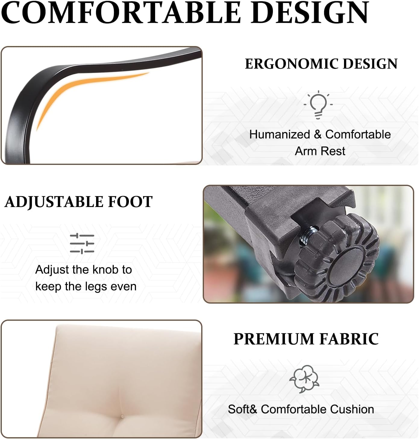 - High elastic cushion makes you more comfortable when using, each chair is equipped with back pillow to add more support and relax. Anti-slip black rubber strap on each foot for maximum foot grip and against scratch the floor
