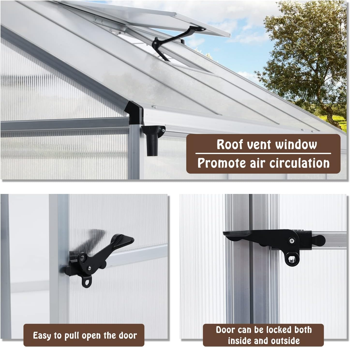 BPS 6' x 8' Walk-in Polycarbonate Greenhouse with Heavy-Duty Aluminum Frame, 1 Vent Window & Lockable Door for Outdoor, Patio, Backyard, and Garden Use