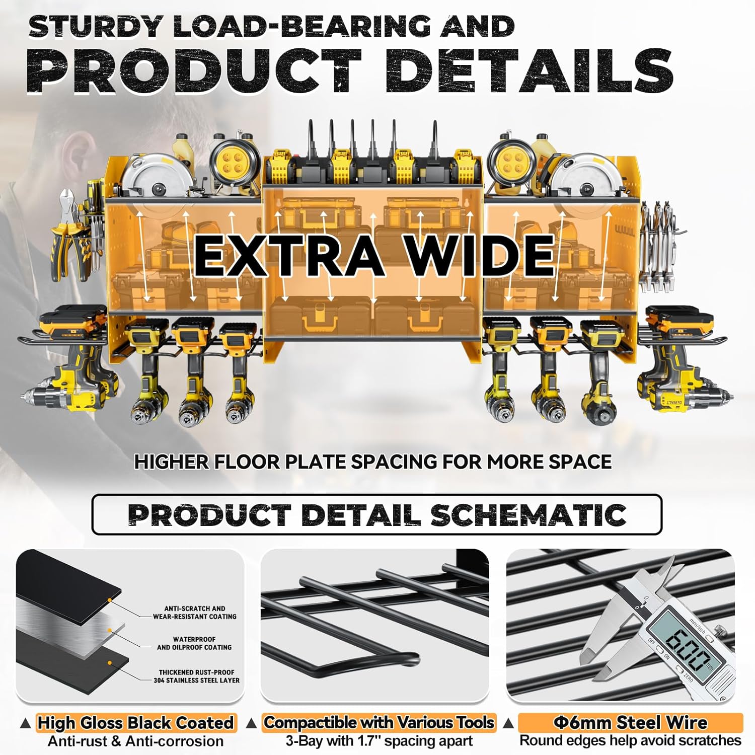 - [Perfect Garage Companion]Utilizing wall-mounted installation, this power tool rack maximizes unused wall space, saving time in tool retrieval. Ideal for garages, homes, workshops, sheds, backyard shops, and more, it offers suspended tool organization and storage.